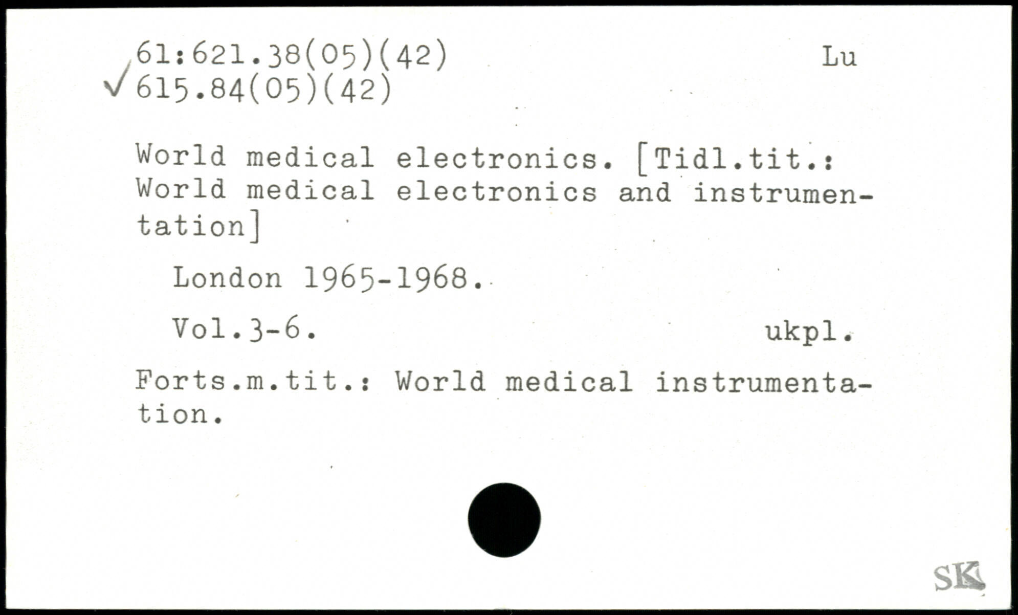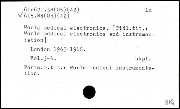World medical electronics. [Tidl.tit.: World medical electronics and instrumentation]