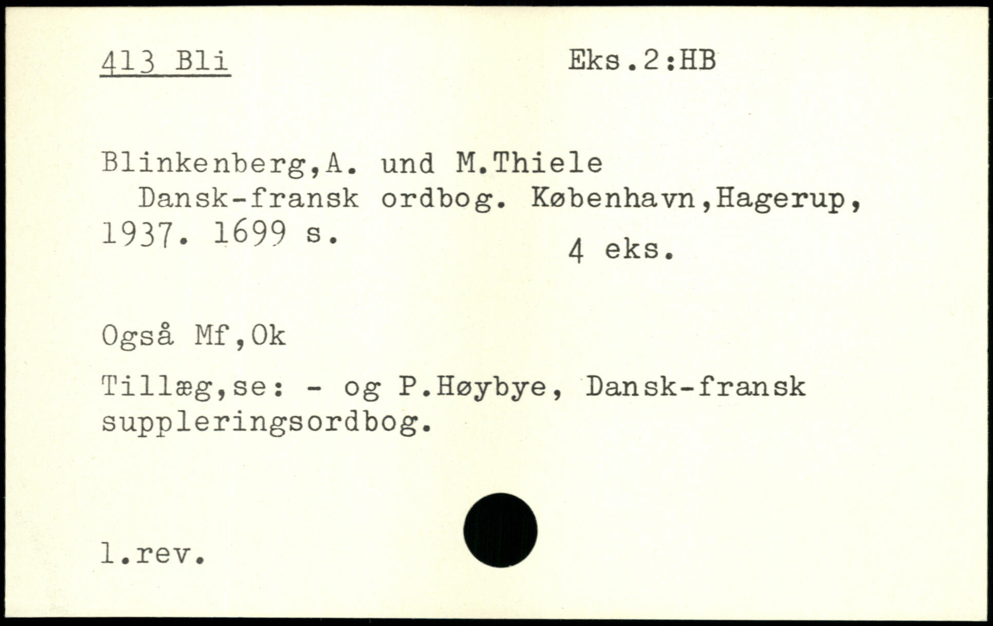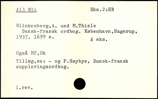 Dansk-fransk ordbog. København,Hagerup, ig37.