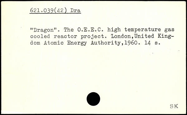 ”'Dragon1'. The O.E.E.C. high temperature gas cooled reactor project, London,United Kingdom Atomic Energy Authority,1960.