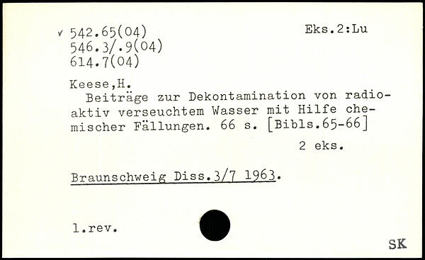 Beiträge zur Dekontamination von radioaktiv verseuchtem Wasser mit Hilfe chemischer Fällungen.