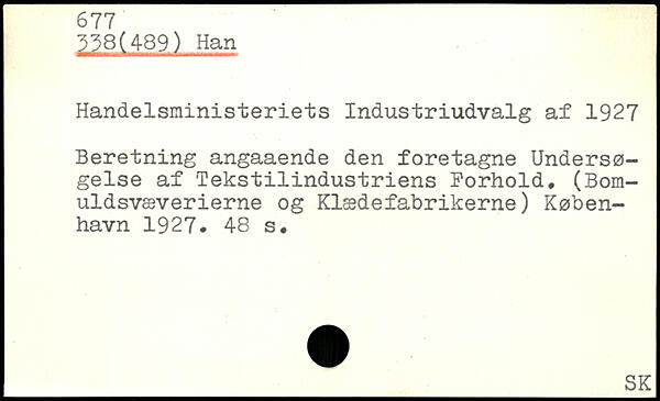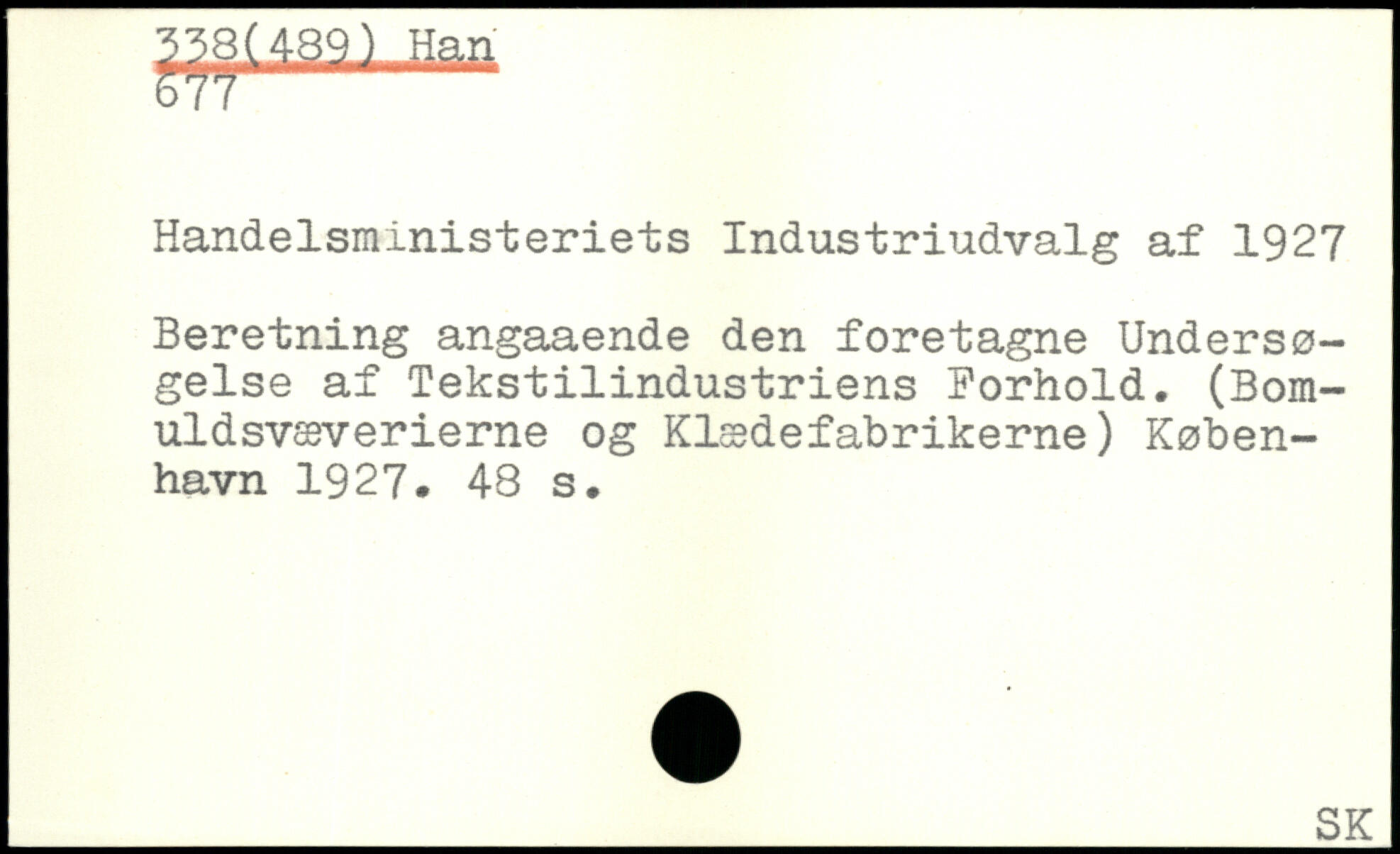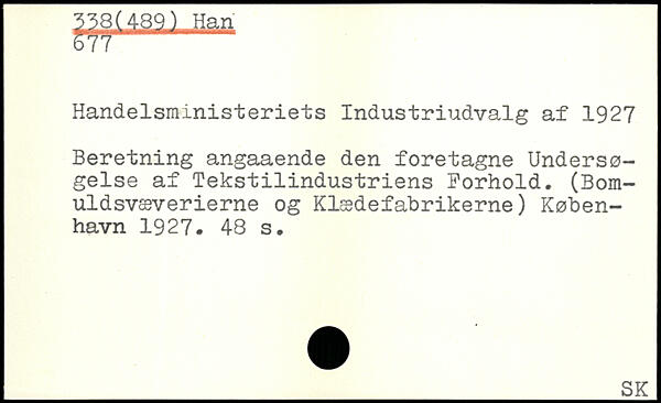 Handelsministeriets Industriudvalg af 1927 Beretning angaaende den foretagne Undersøgelse af Tekstilindustriens Forhold, (Bomuldsvæverierne og Klædefabrikerne)