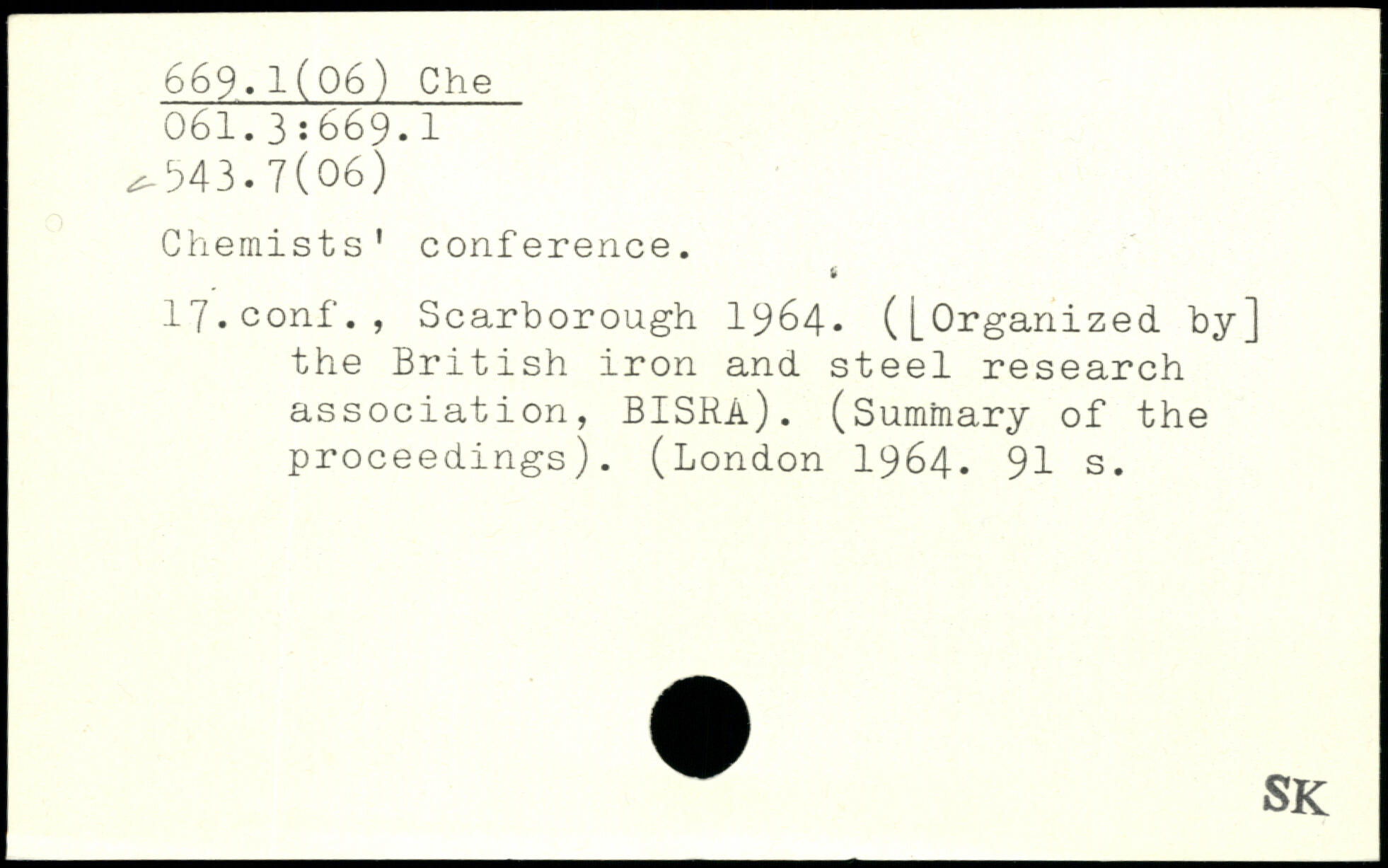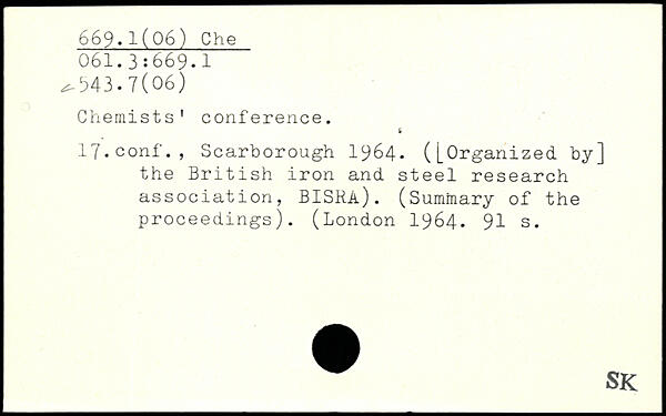Chemists' conference. 17.conf., Scarborough 1964. ([Organized by] the British iron and steel research association, BISRa). (Summary of the proceedings). (