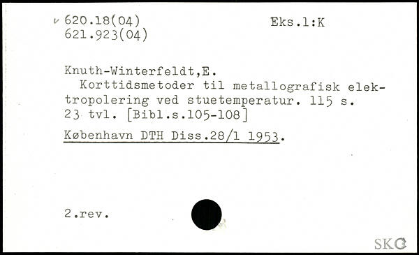 Korttidsmetoder til metallografisk elek- tropolering ved stuetemperatur.