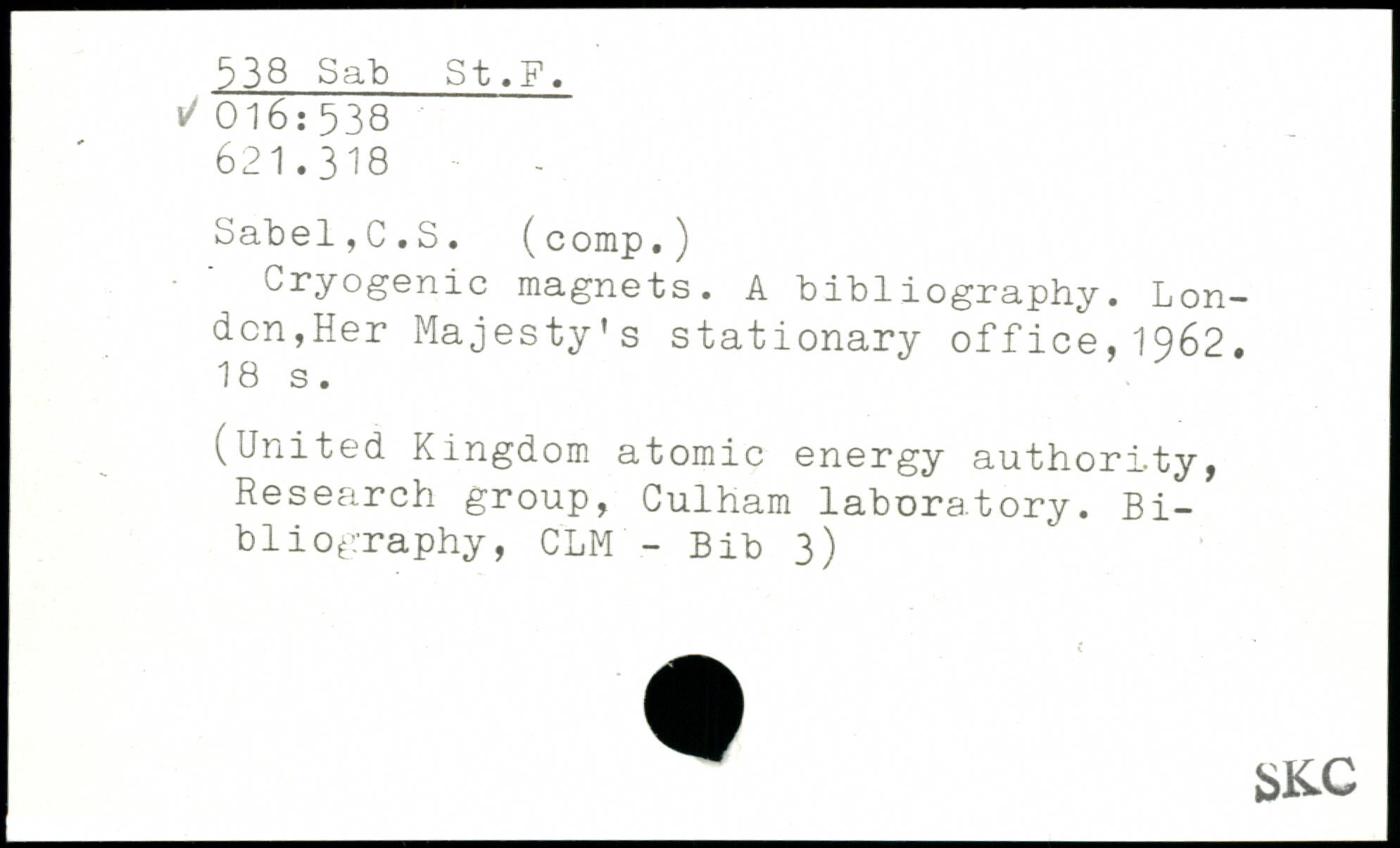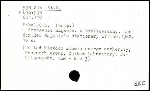 Cryogenic magnets. A bibliography. London,Her Majesty’s stationary office,1962.