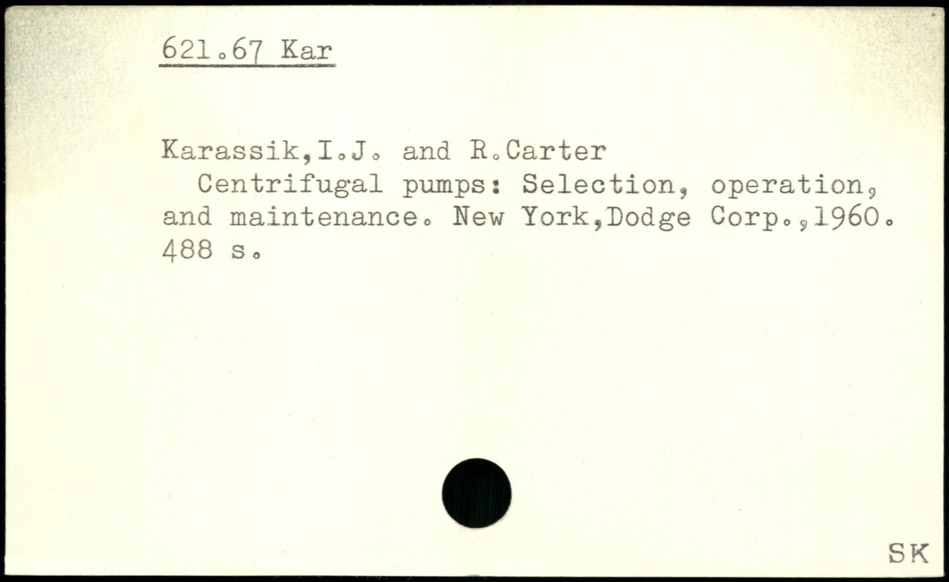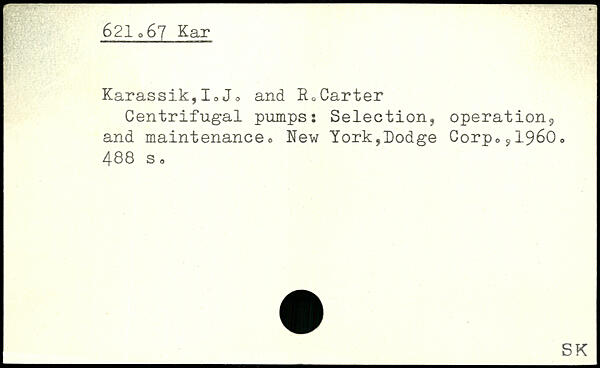 Centrifugal pumpsi Selection, operation9 and maintenance o New York,Dodge CorpOÿ1960o