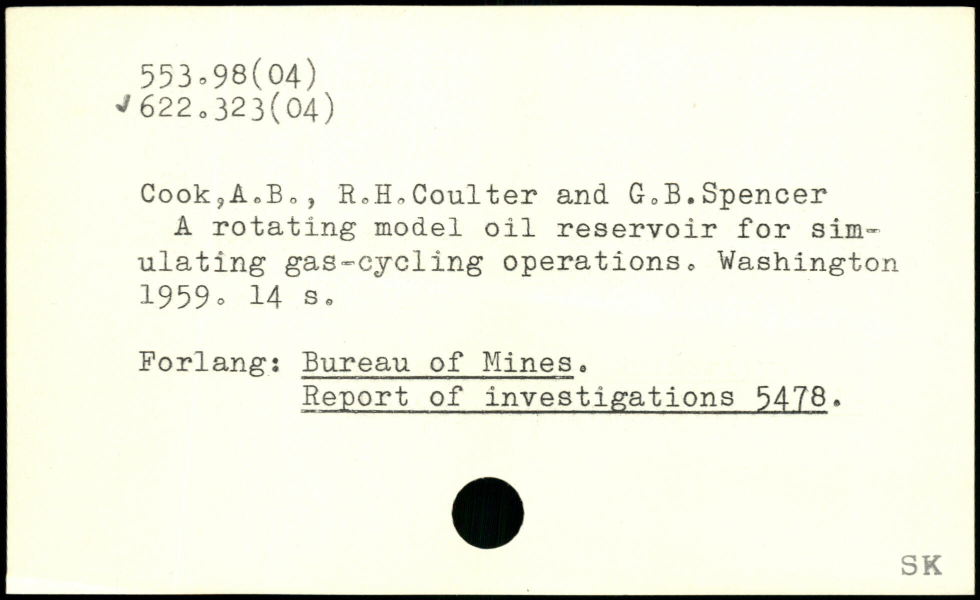 Cook?A,B,, RcH,Coulter and G,B.Spencer A rotating model oil reservoir for sim-ulating gas-cycling operations