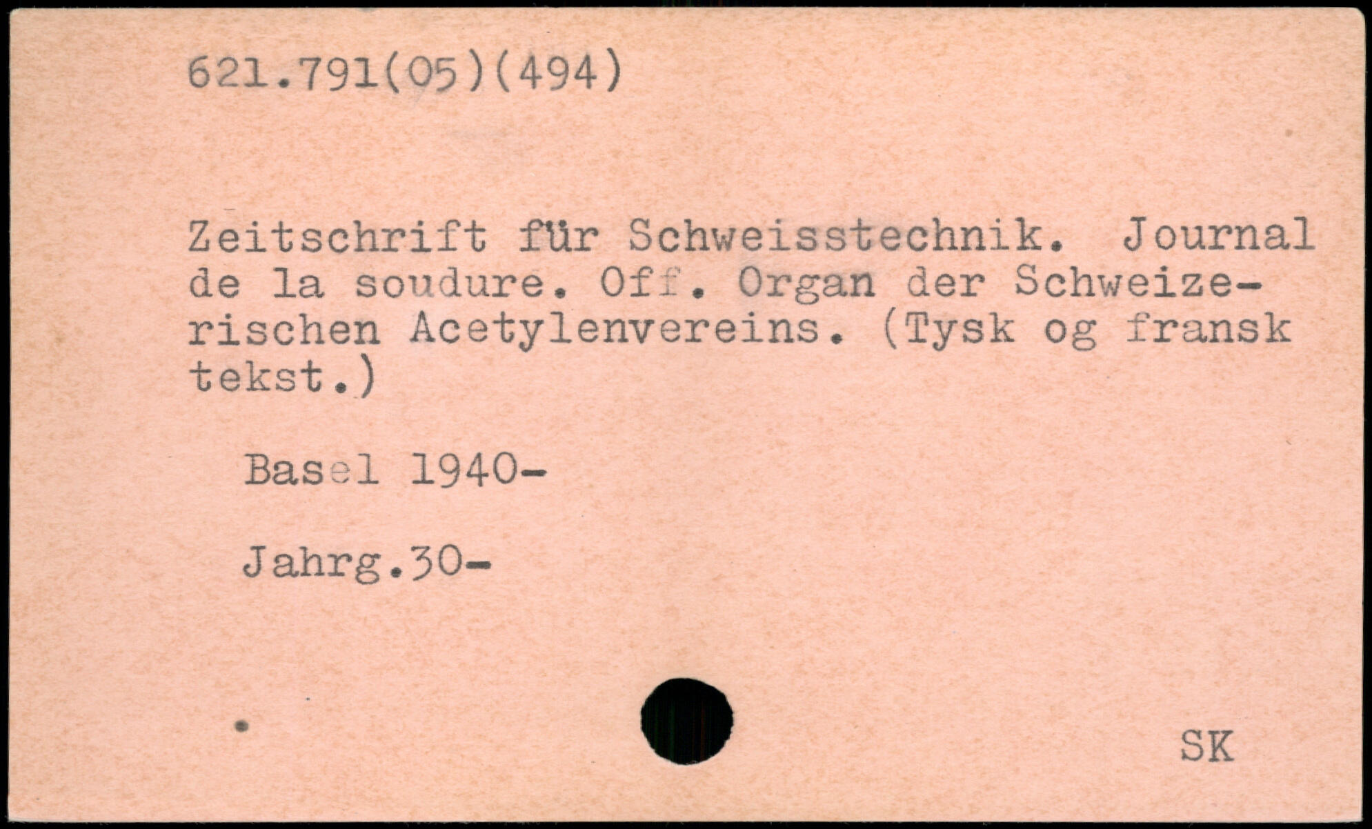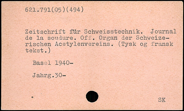 Zeitschrift für Schweisstechnik. Journal de la soudure. Off. Organ der Schweizerischen Acetylenvereins. (fysk og fransk tekst.)