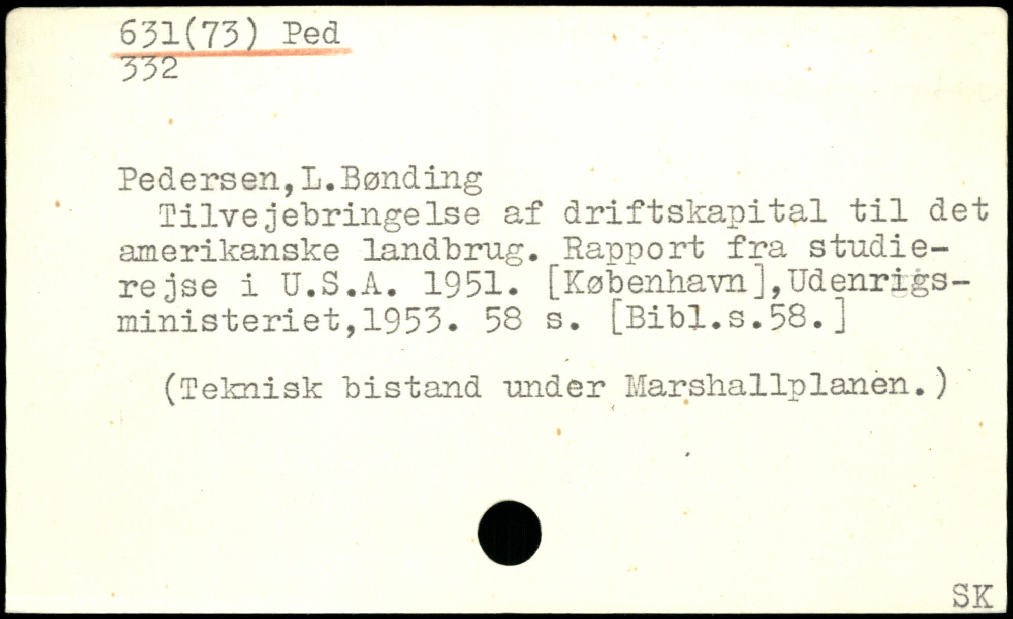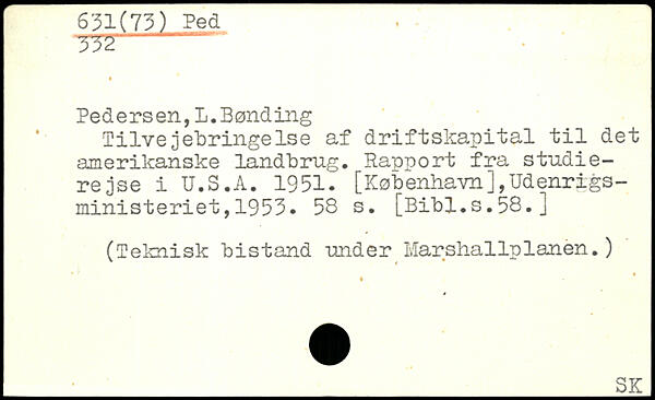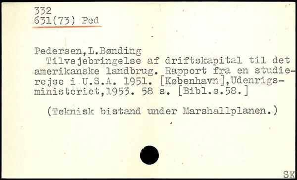 Tilvejebringelse af driftskapital til det amerikanske landbrug. Rapport fra en studierejse i.U.S.A. 1951. [København],Udenrigsministeriet, 1953.