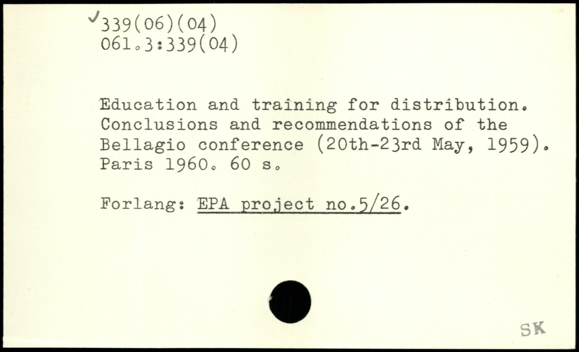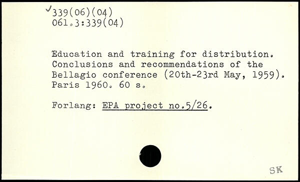 Education and training for distribution,, Conclusions and recommendations of the Bellagio conference (20th-23rd May, 1959)