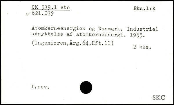Atomkerneenergien og Danmark. Industriel udnyttelse af atomkerneenergi. 1995. (Ingeniøren,Årg.64,Hft. Il) ,