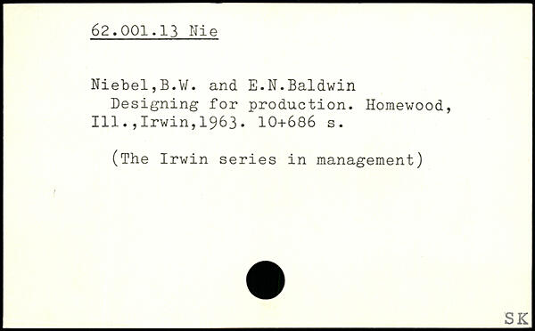Designing for production. Homewood, 1111rwin,1963.