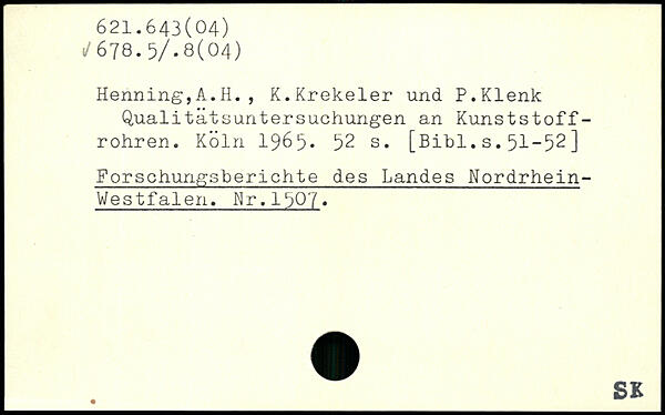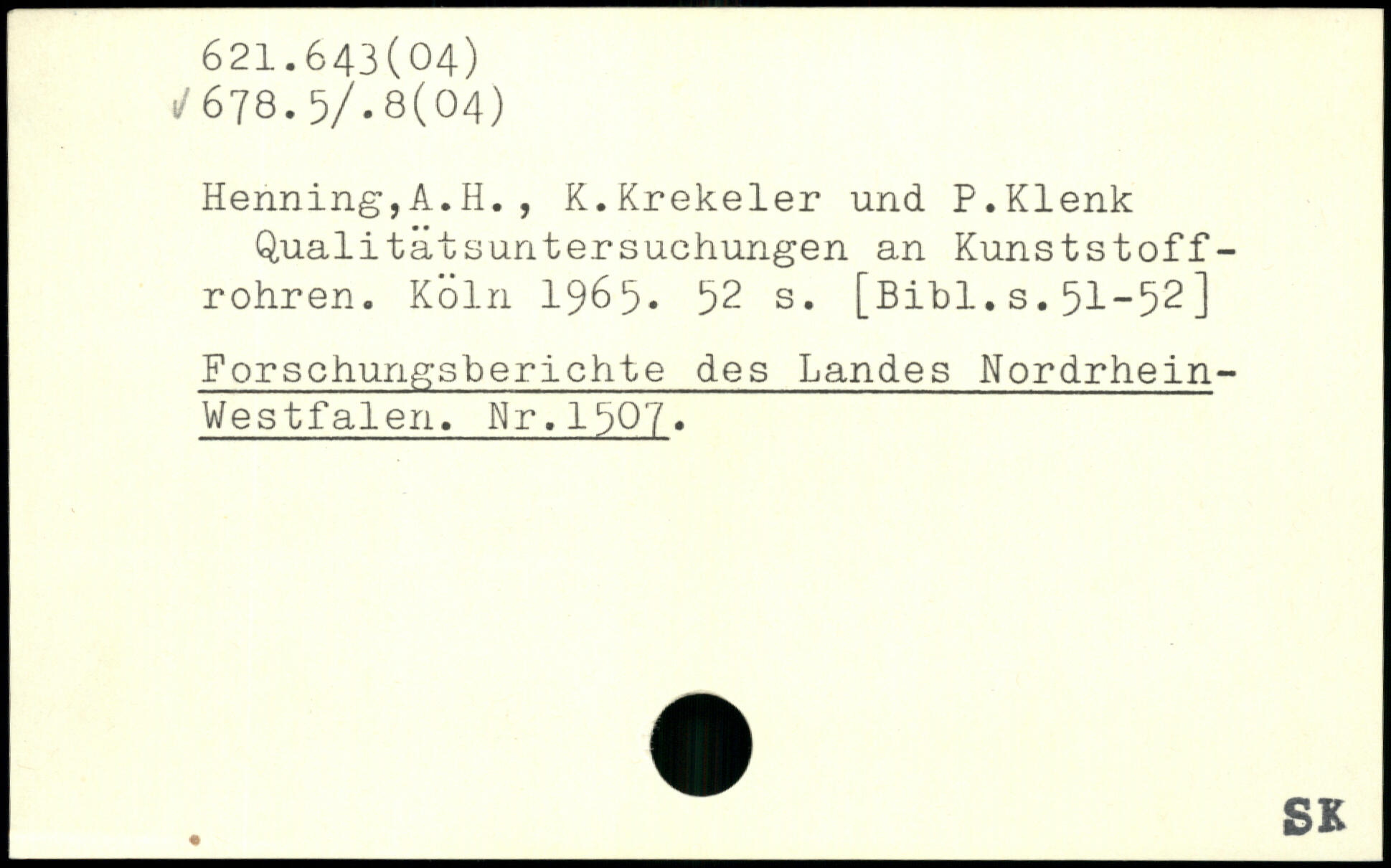 Henning,A.H., K.Krekeler und P.Klenk Qualitatsuntersuchungen an Kunststoffrohren.