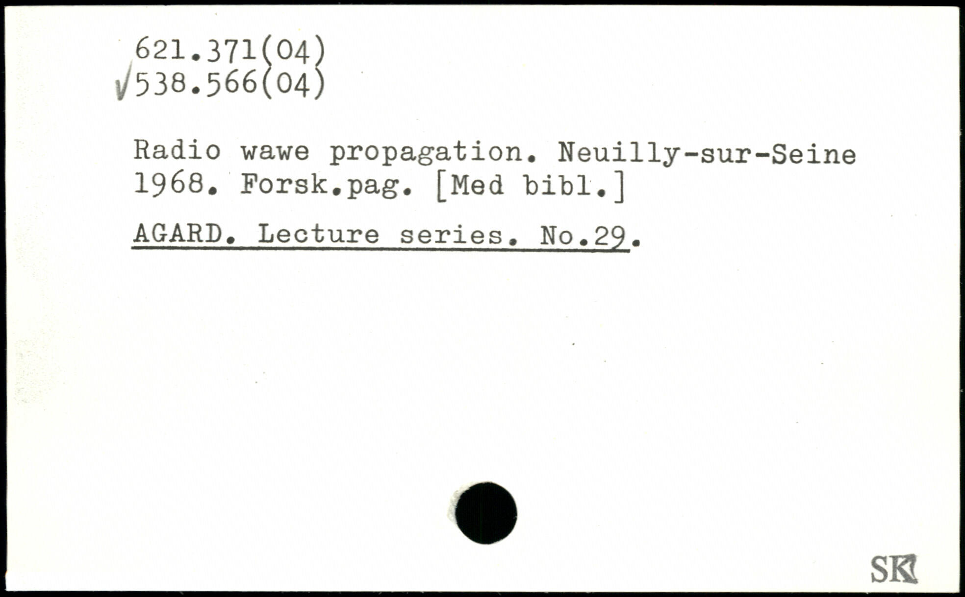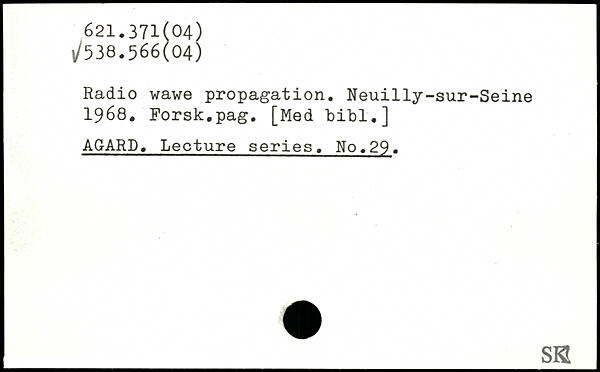 Radio wawe propagation. Neuilly-sur-Seine 1968. Forsk.pag. [Med bill.] AGARD. Lecture series. No.29. _SB