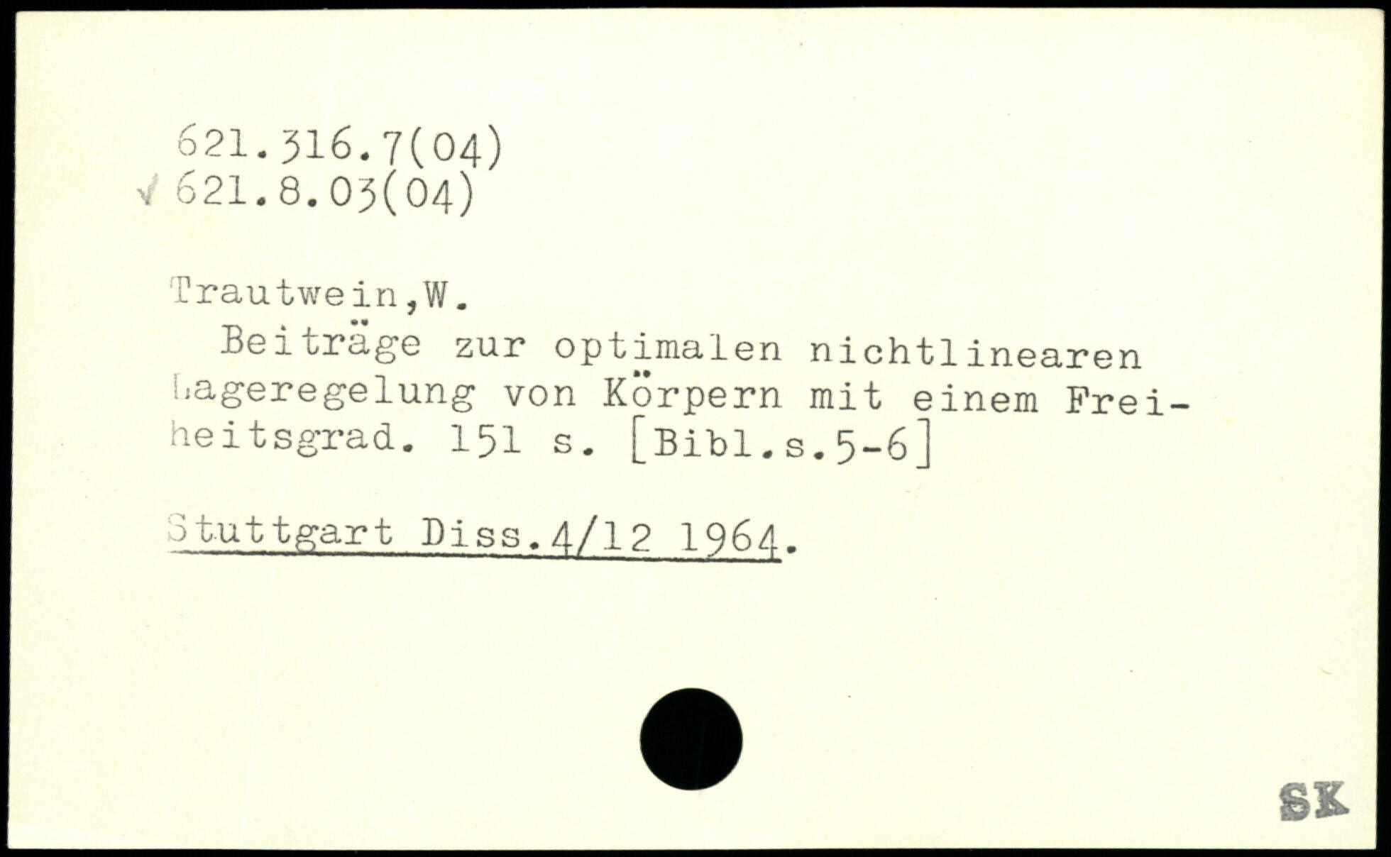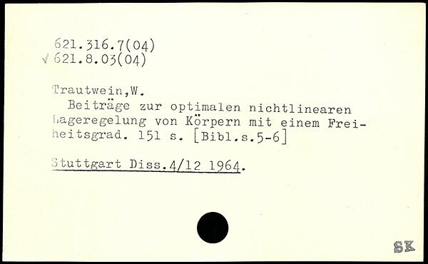 Beiträge zur optimalen nichtlinearen uageregelung von Körpern mit einem Freiheitsgrad.