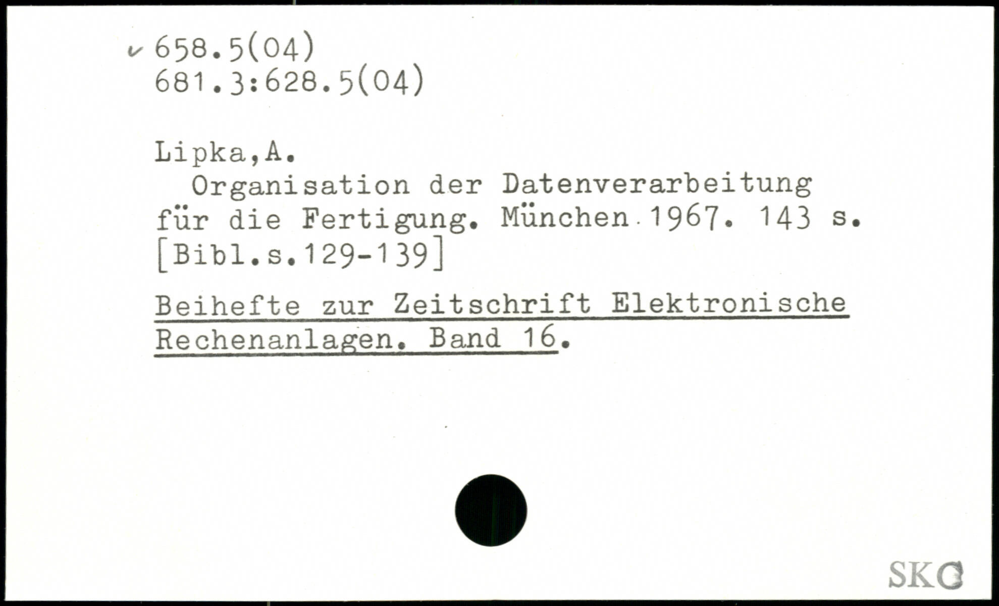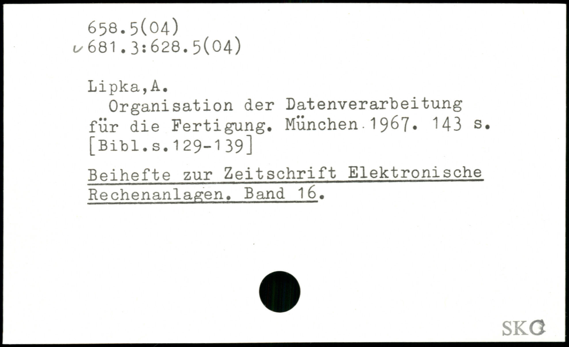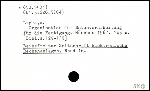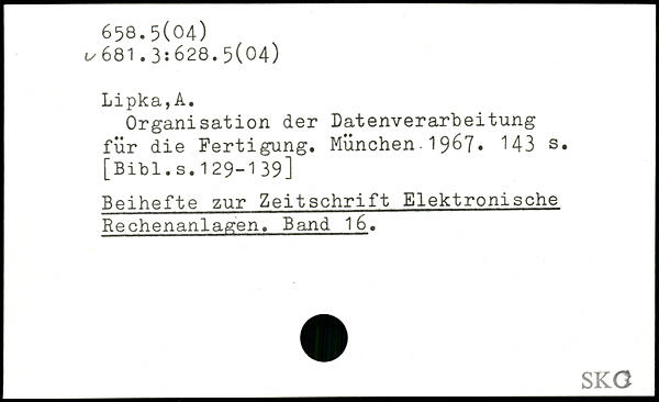 Organisation der Datenverarbeitung für die Fertigung. München. 1967. M