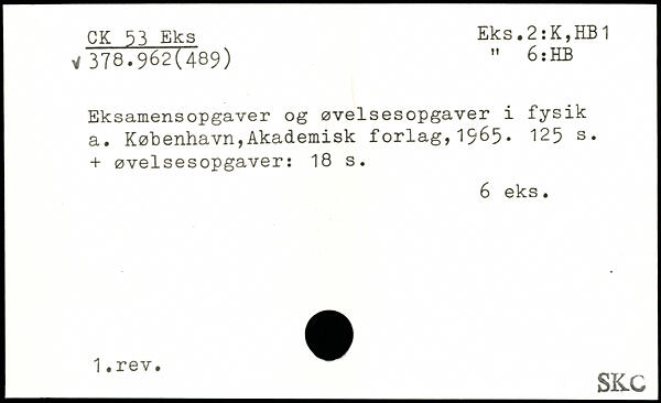 Eksamensopgaver og øvelsesopgaver i fysik a.