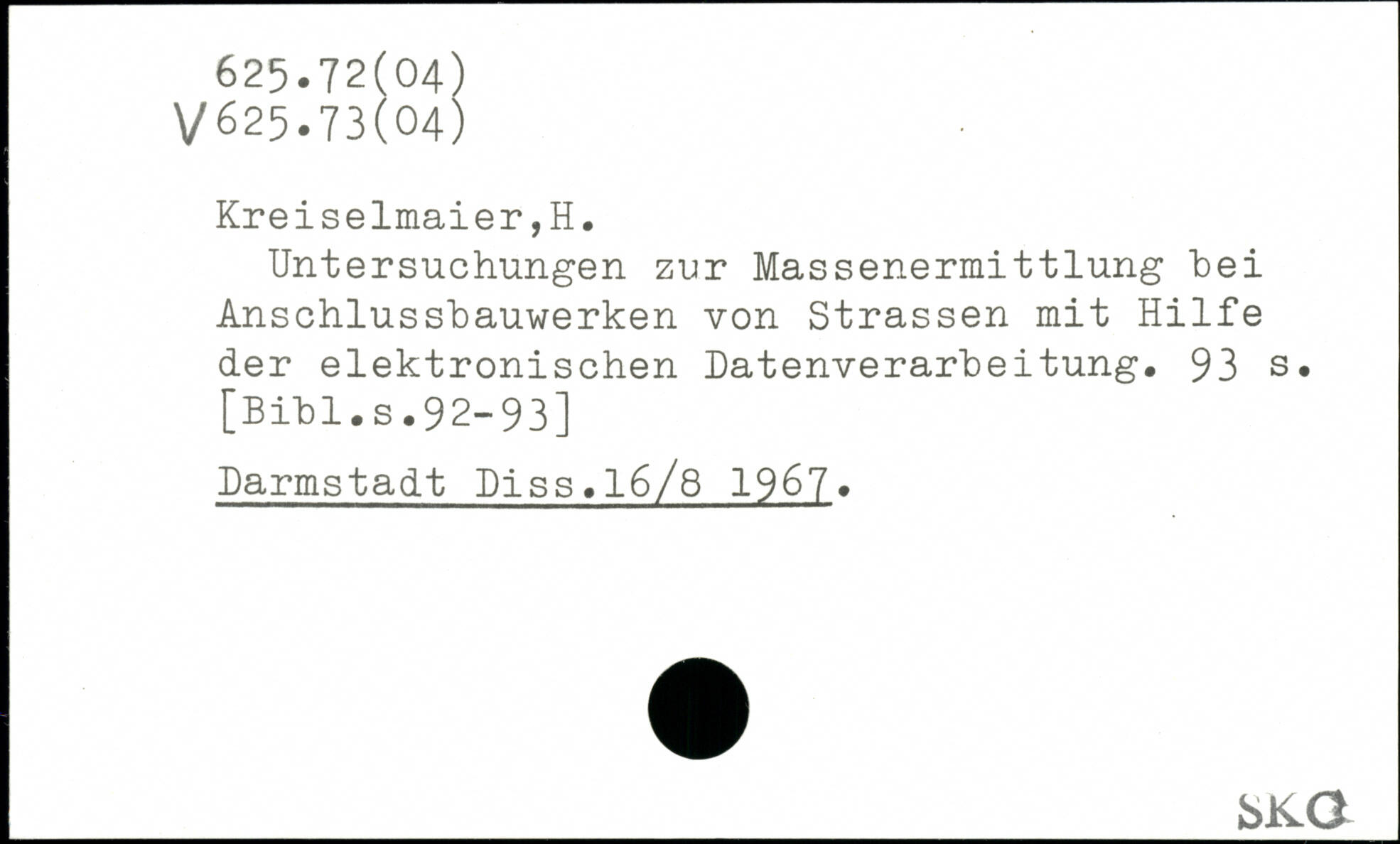 Untersuchungen zur Massenermittlung bei Anschlussbauwerken von Strassen mit Hilfe der elektronischen Datenverarbeitung.