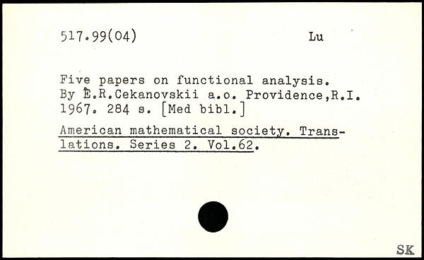 Five papers on functional analysis. By Ê.R.Cekanovskii a.o. Providence,R.I. 1967.