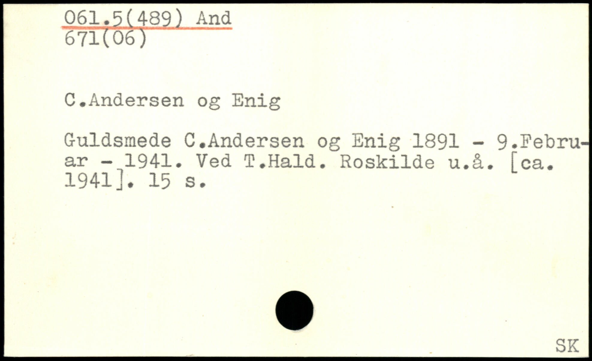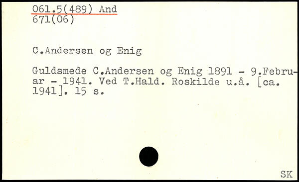 Guldsmede C.Andersen og Enig 1891 - 9.Februar - 1941. Ved T.Hald. Roskilde u.å. [ca. 1941].