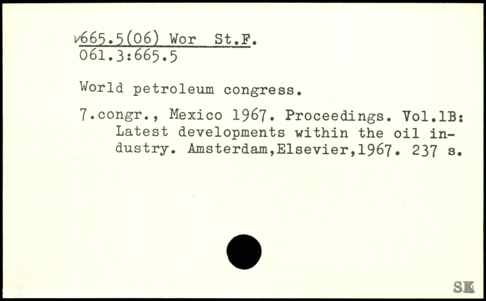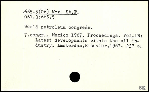World petroleum congress. 7.congr., Mexico 1967. Proceedings. Vol.lB: Latest developments within the oil industry.