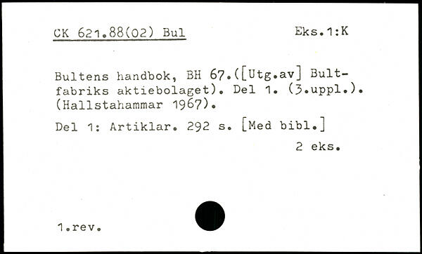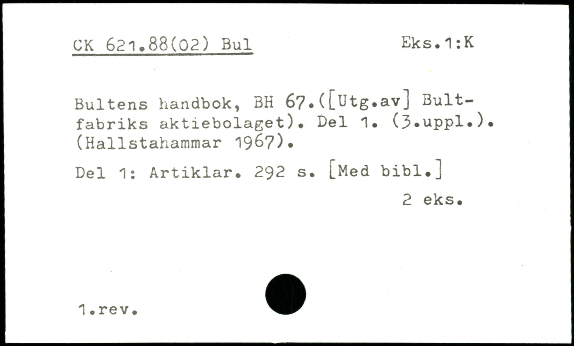 Bultens handbok, BH 67,([utg#av] Bult-fabriks aktiebolaget). Del 1, (