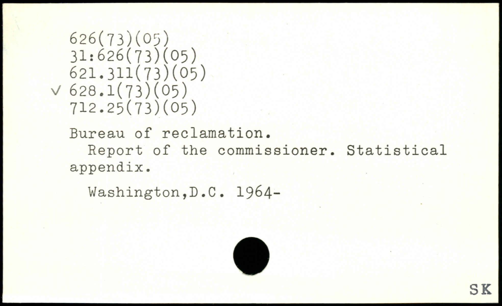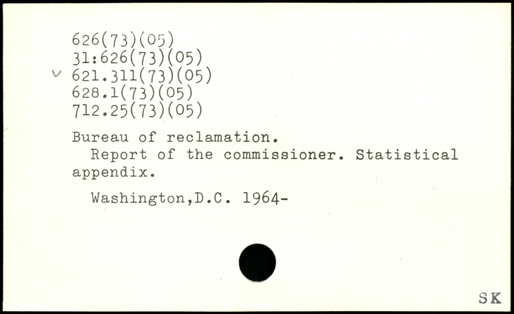 Bureau of reclamation. Report of the commissioner. Statistical appendix. Washington,D.C. 1964-