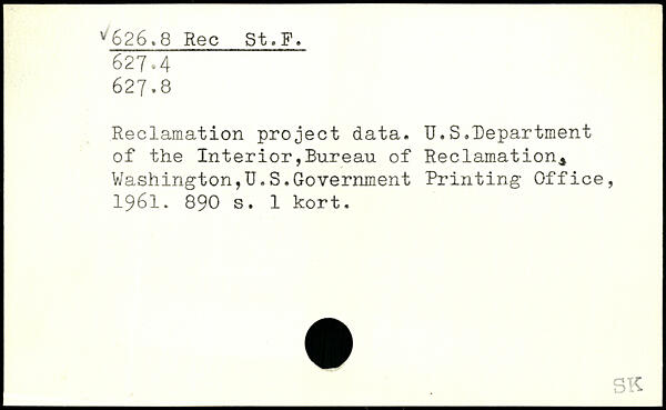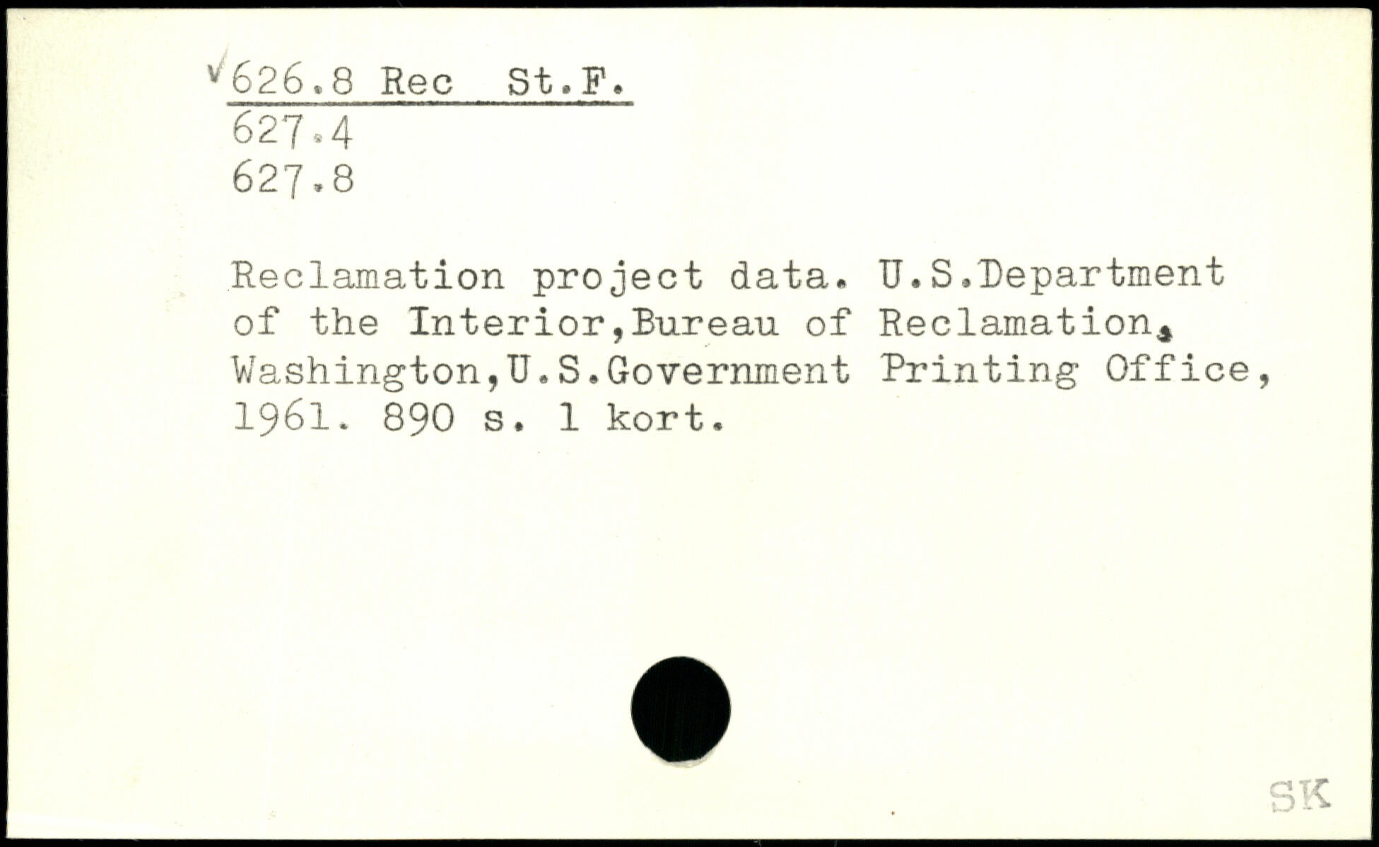 Reclamation project data. U.S.Department of the Interior,Bureau of Reclamation. Washington,U.S.Government Printing Office, 1961.