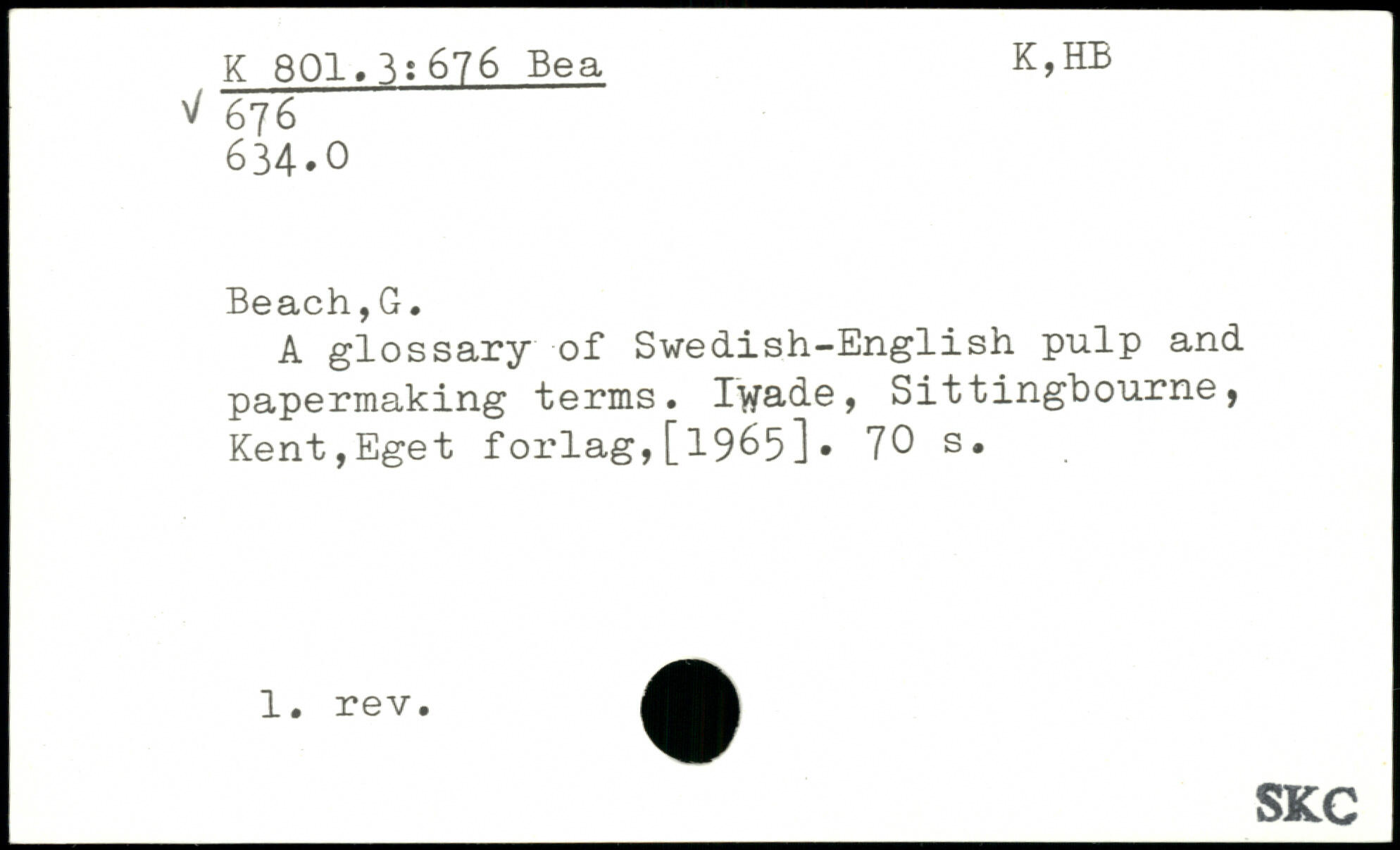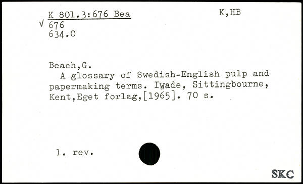 A glossary of Swedish-English pulp and papermaking terms. Iyfade, Sittingbourne, Kent,Eget forlag,[19^5].