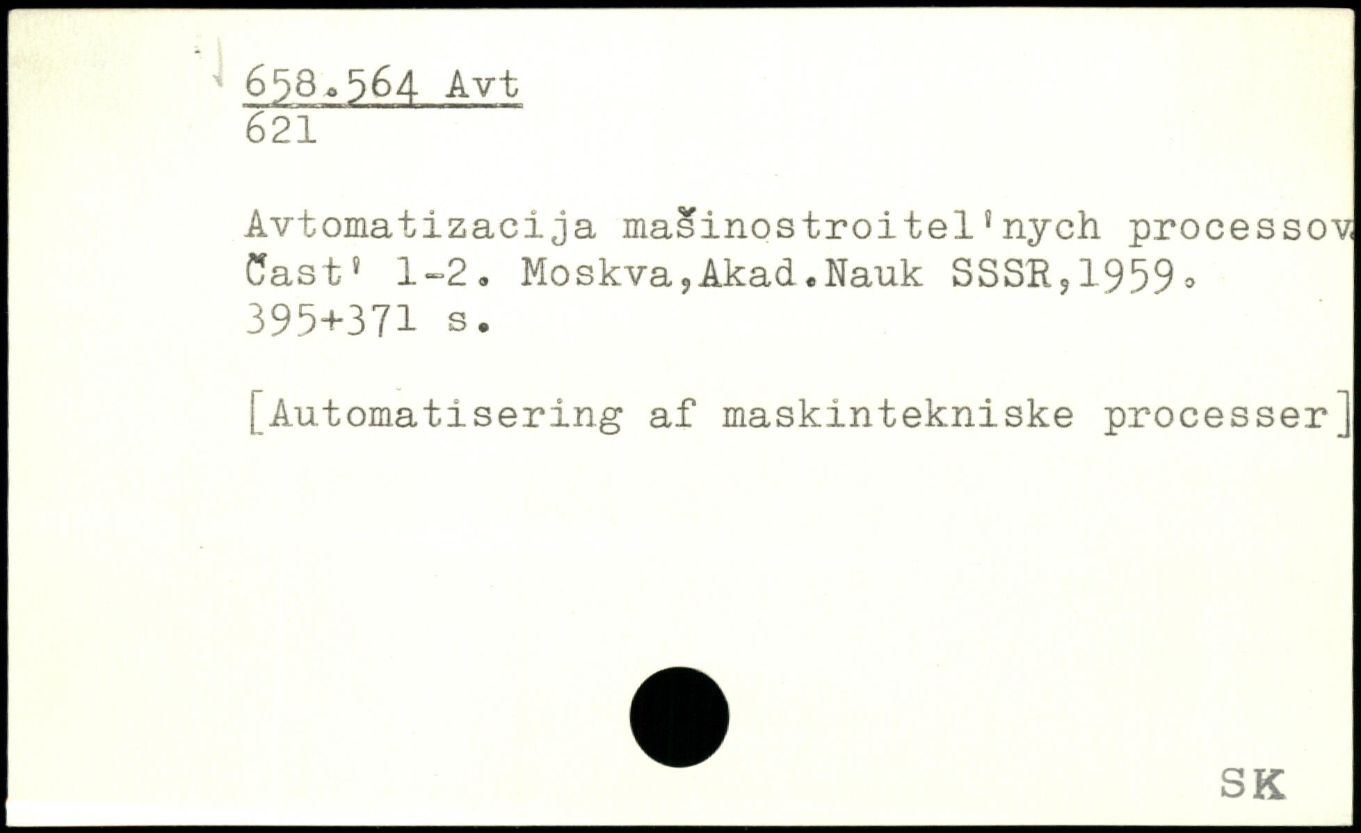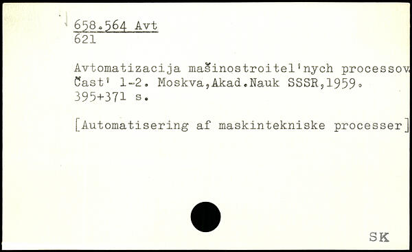 Avtomatizacija masinostroitel1nych processov Cast. 1-2. Moskva,Akad.Nauk SSSR,1959.