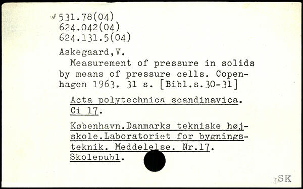 Measurement of pressure in solids by means of pressure cells. Copen- | hagen 1963.