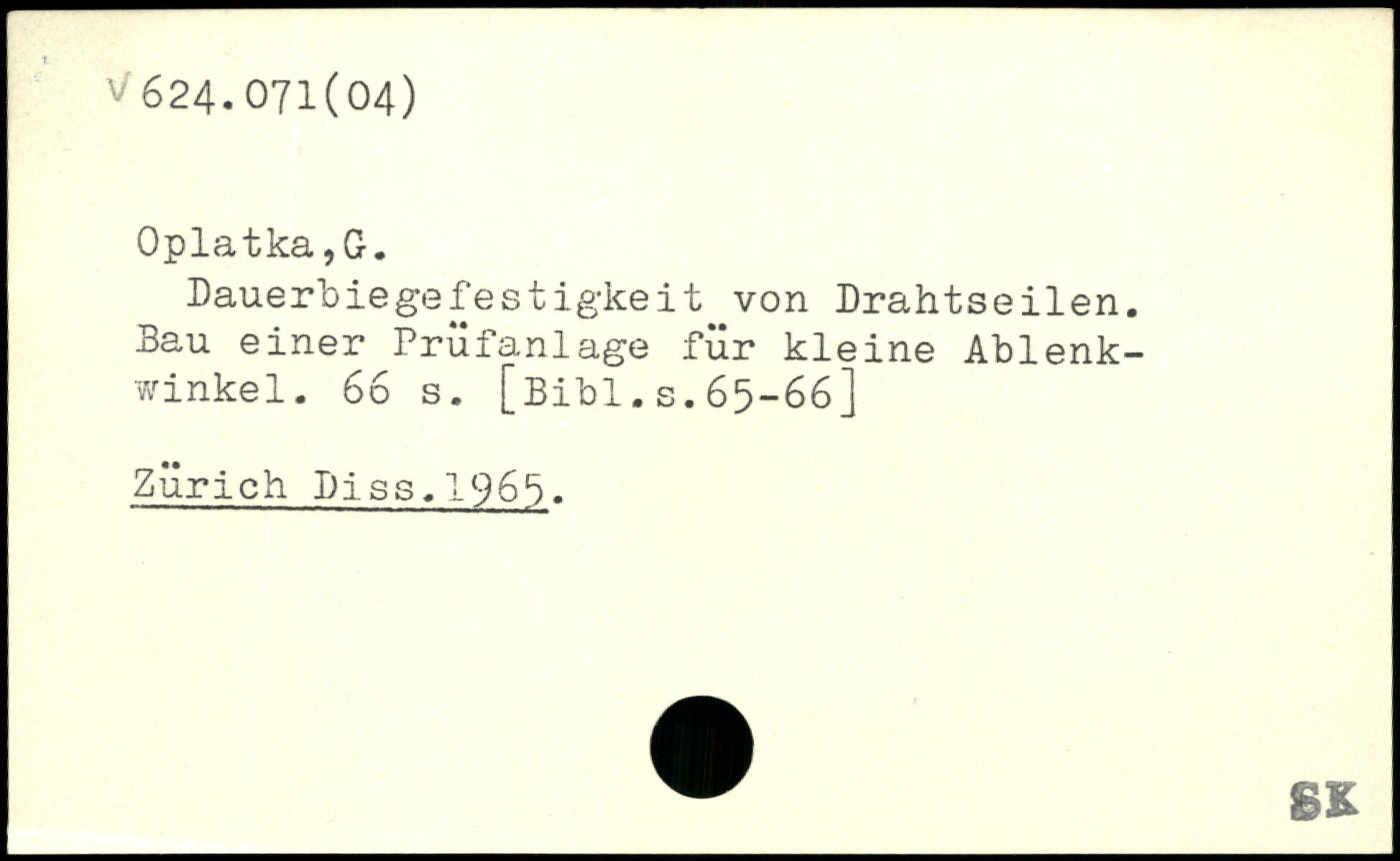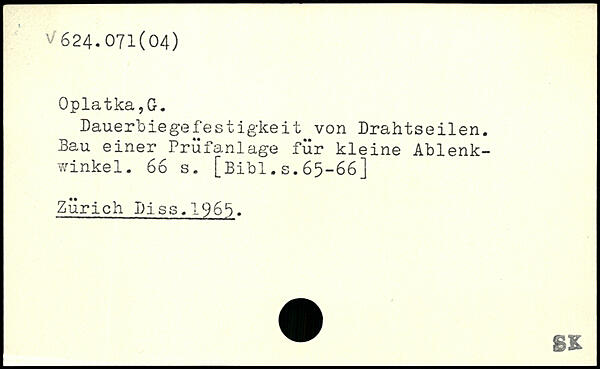 Dauerbiegefestigkeit von Drahtseilen. Bau einer Prüfanlage für kleine Ablenkwinkel.