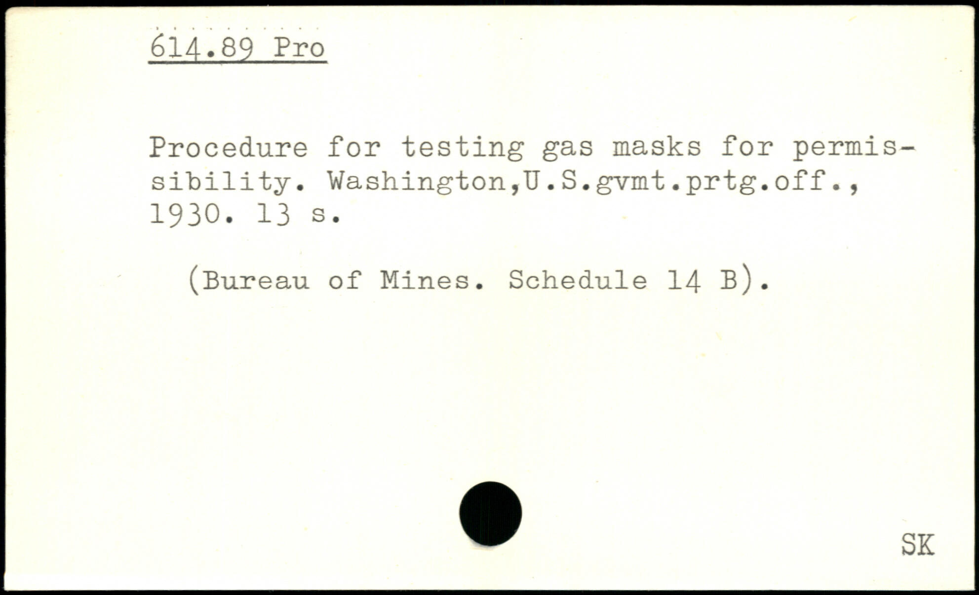 Procedure for testing gas masks for permissibility. Washington,U.S.gvmt.prtg.off., 1930.