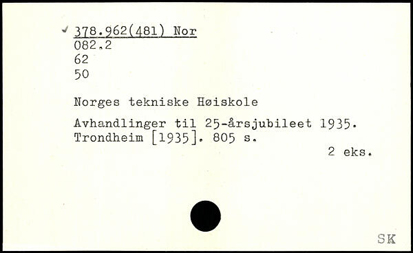 Norges tekniske Hoiskole Avhandlinger til 25-årsjubileet 1935.