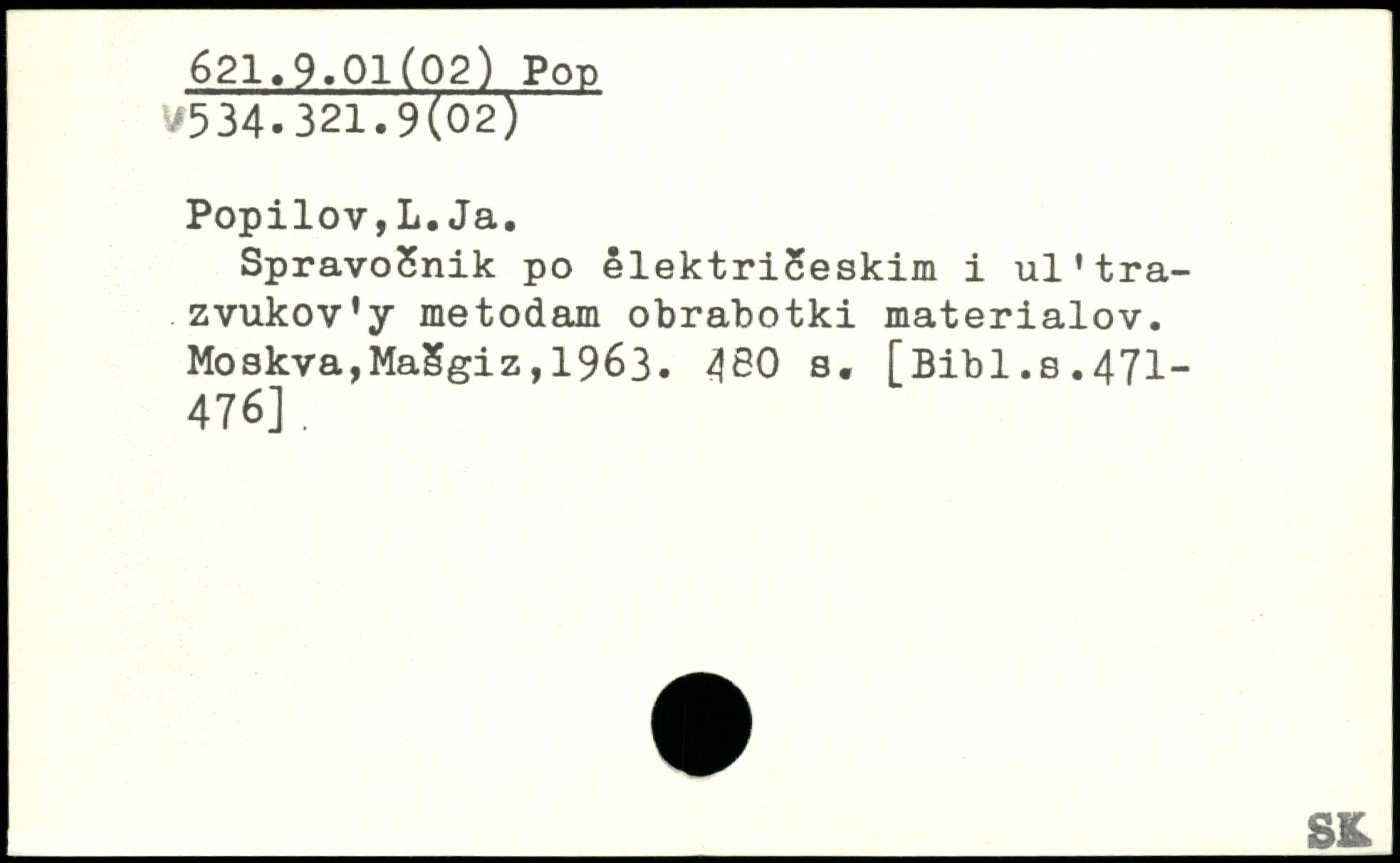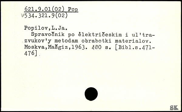 Popilov,L.Ja. SpravoSnik po êlektriceskim i ul’tra-zvukov'y metodam obrabotki materialov.