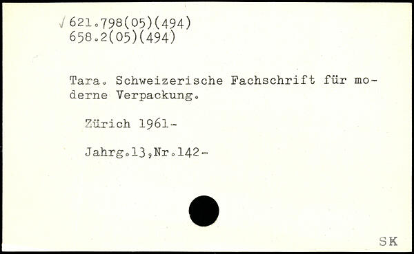 Tara, Schweizerische Fachschrift für moderne Verpackung. Zürich 1961- Jahrgo13sNro142=