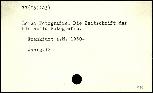 Leica Fotografie. Die Zeitschrift der Kleinbild-Fotografie. Frankfurt a.M. 1960- Jahrg,12-