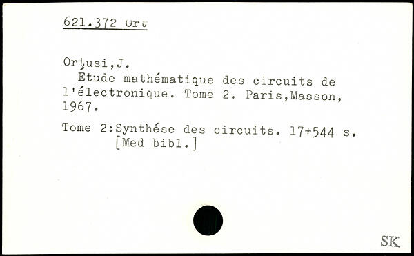 Etude mathématique des circuits de 1’electronique. Tome 2. Paris.Masson, 196?. Tome 2 ï Synthèse des circuits. 17 +