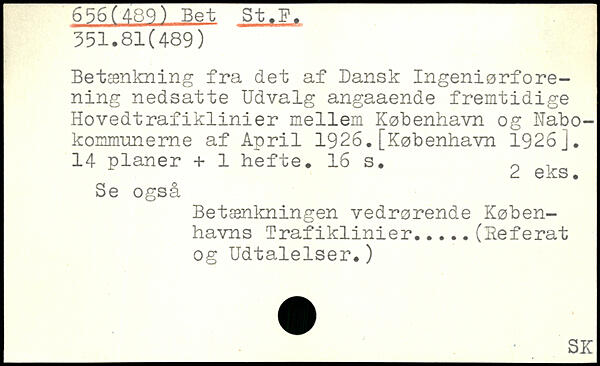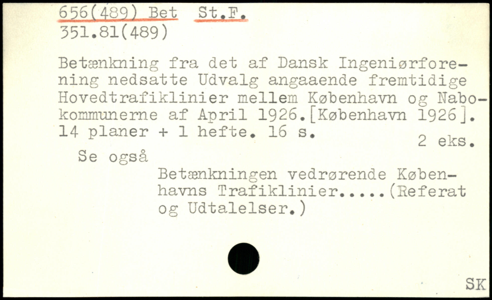 Betænkning fra det af Dansk Ingeniørforening nedsatte Udvalg angaaende fremtidige Hovedtrafiklinier mellem København og Nabokommunerne af April 1926.