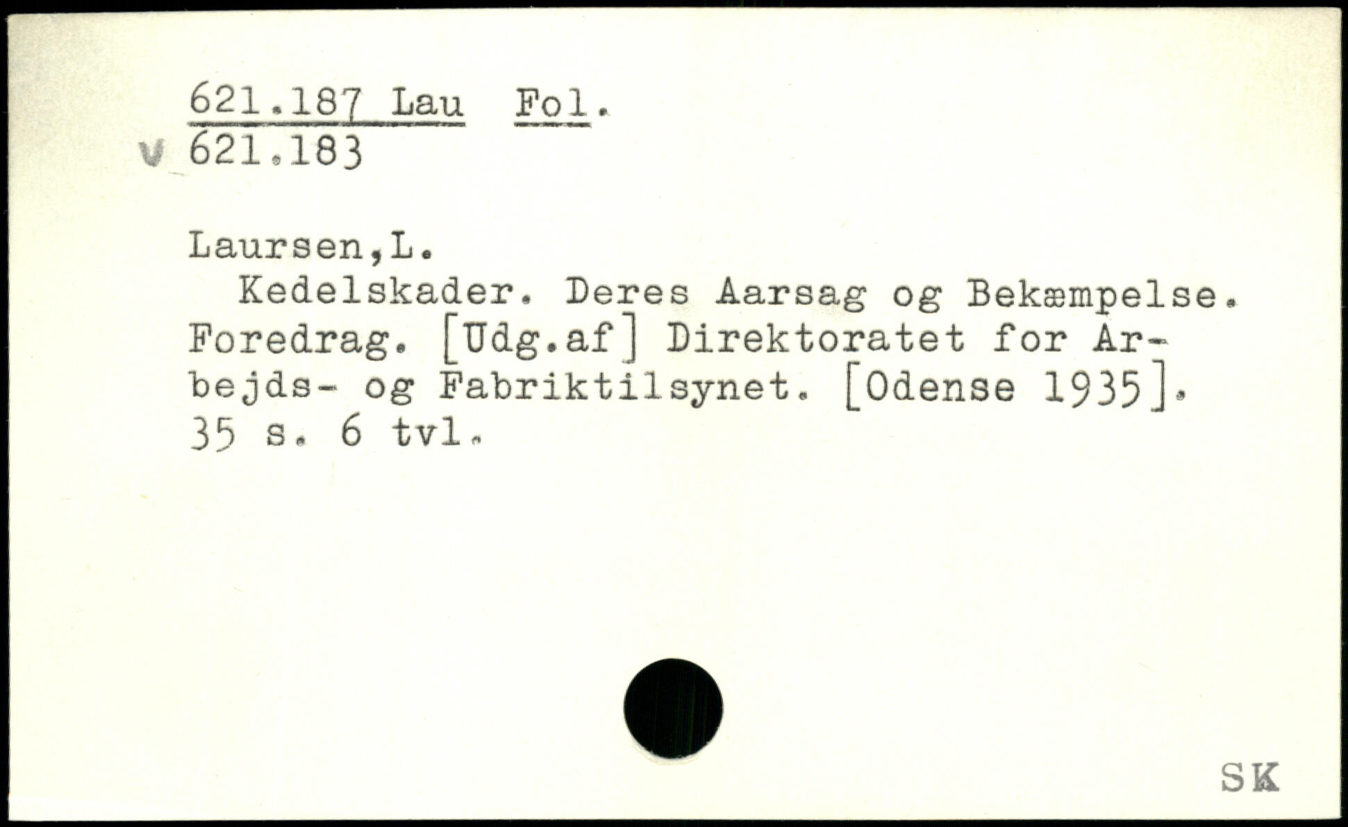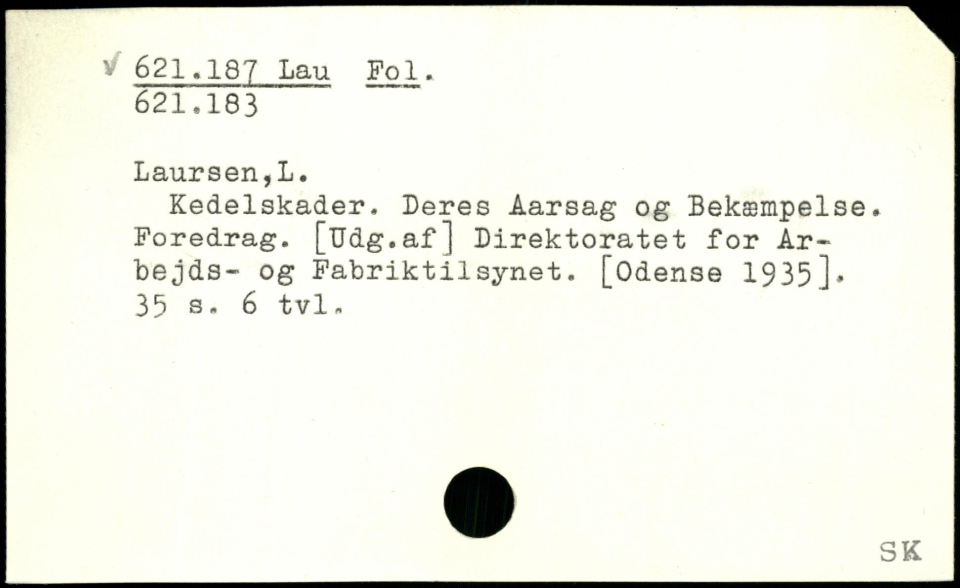 Kedelskader, Deres Aarsag og Bekæmpelse. Foredrag. [Udg.af] Direktoratet for Ar-bejds- og Fabriktilsynet. [Odense 1935].