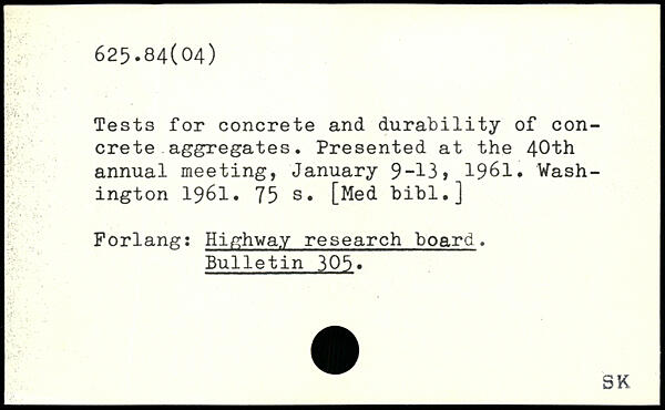 Tests for concrete and durability of concrete aggregates. Presented at the 40th annual meeting, January 9-13. 1961.