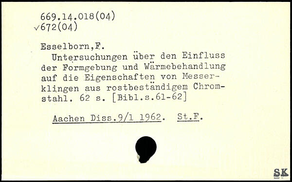 Untersuchungen über den Einfluss der Formgebung und Wärmebehandlung auf die Eigenschaften von Messerklingen aus rostbeständigem Chromstahl.