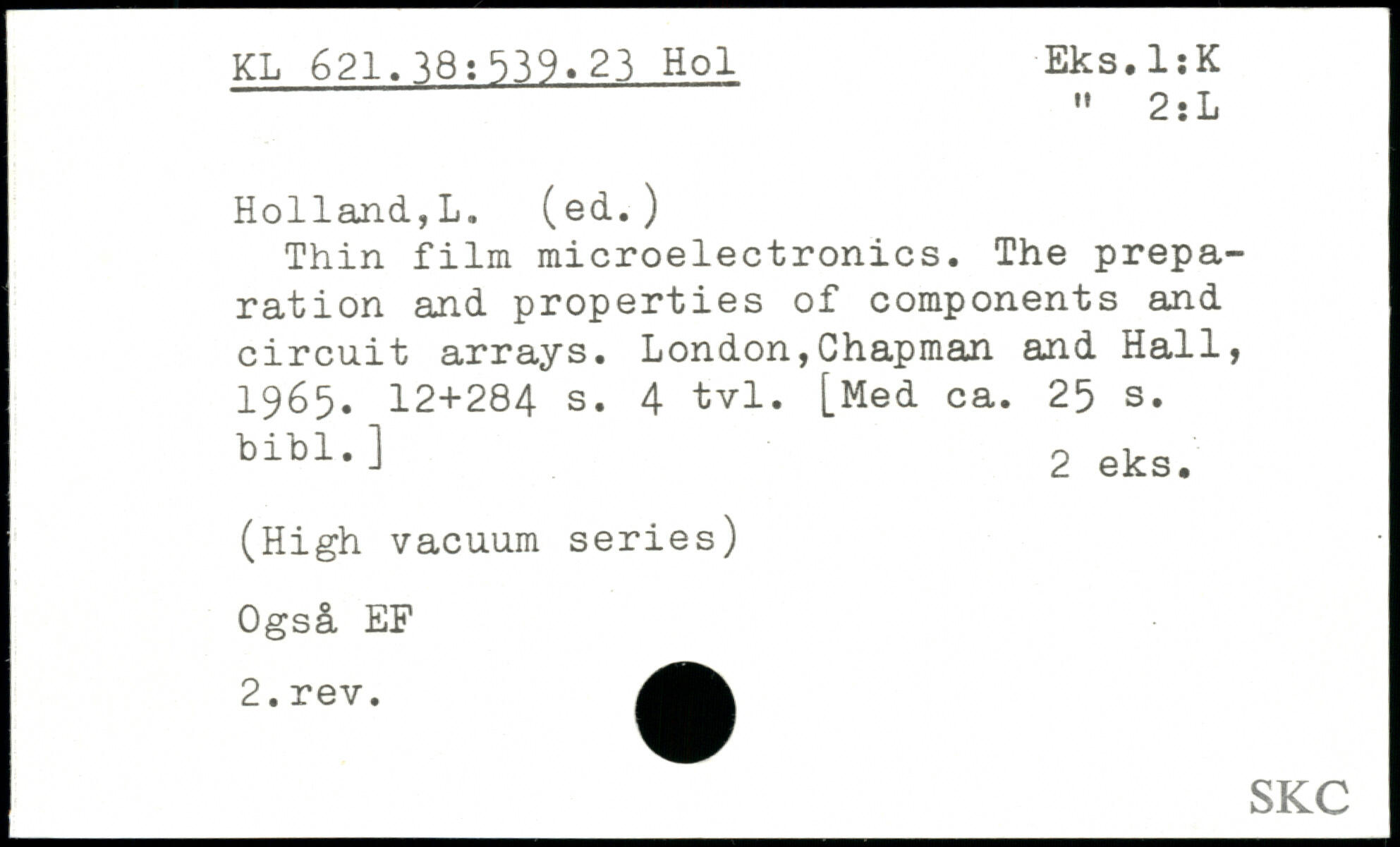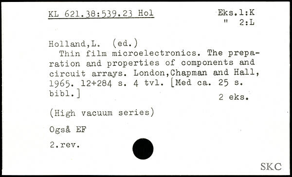Thin film microelectronics. The preparation and properties of components and circuit arrays.