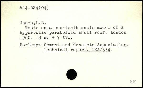 Tests on a one-tenth scale model of a hyperbolic paraboloid shell roof.