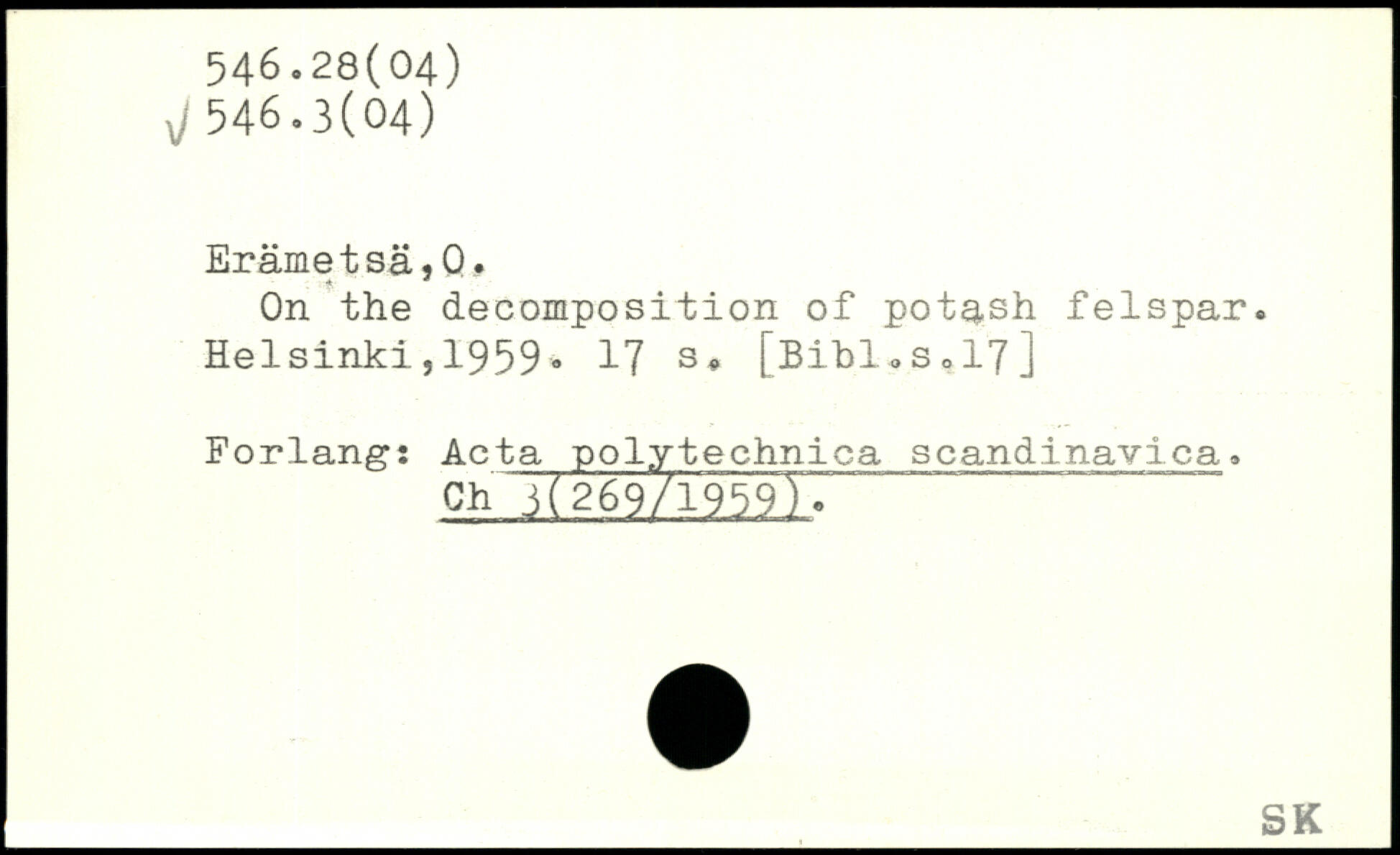 On the decomposition of potash felspar. Helsinki,1959.