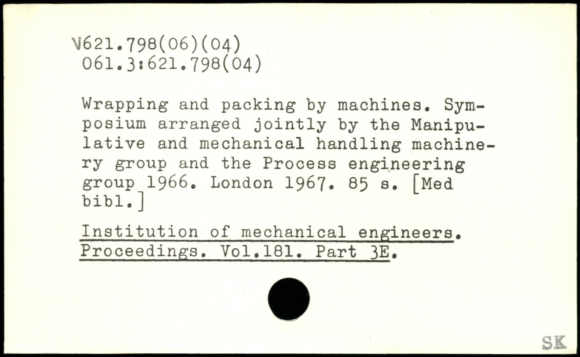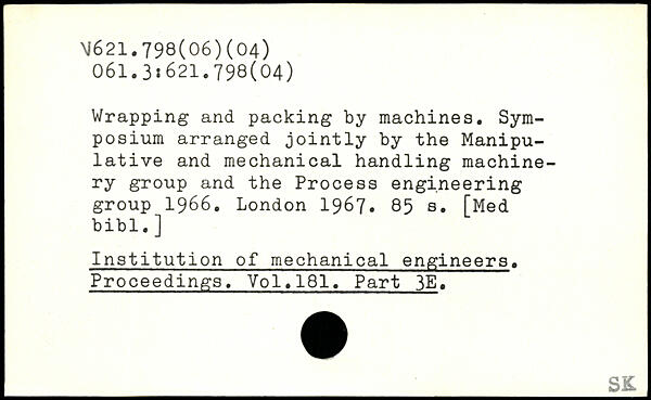 Wrapping and packing by machines. Symposium arranged jointly by the Manipulative and mechanical handling machinery group and the Process engineering group 1966.