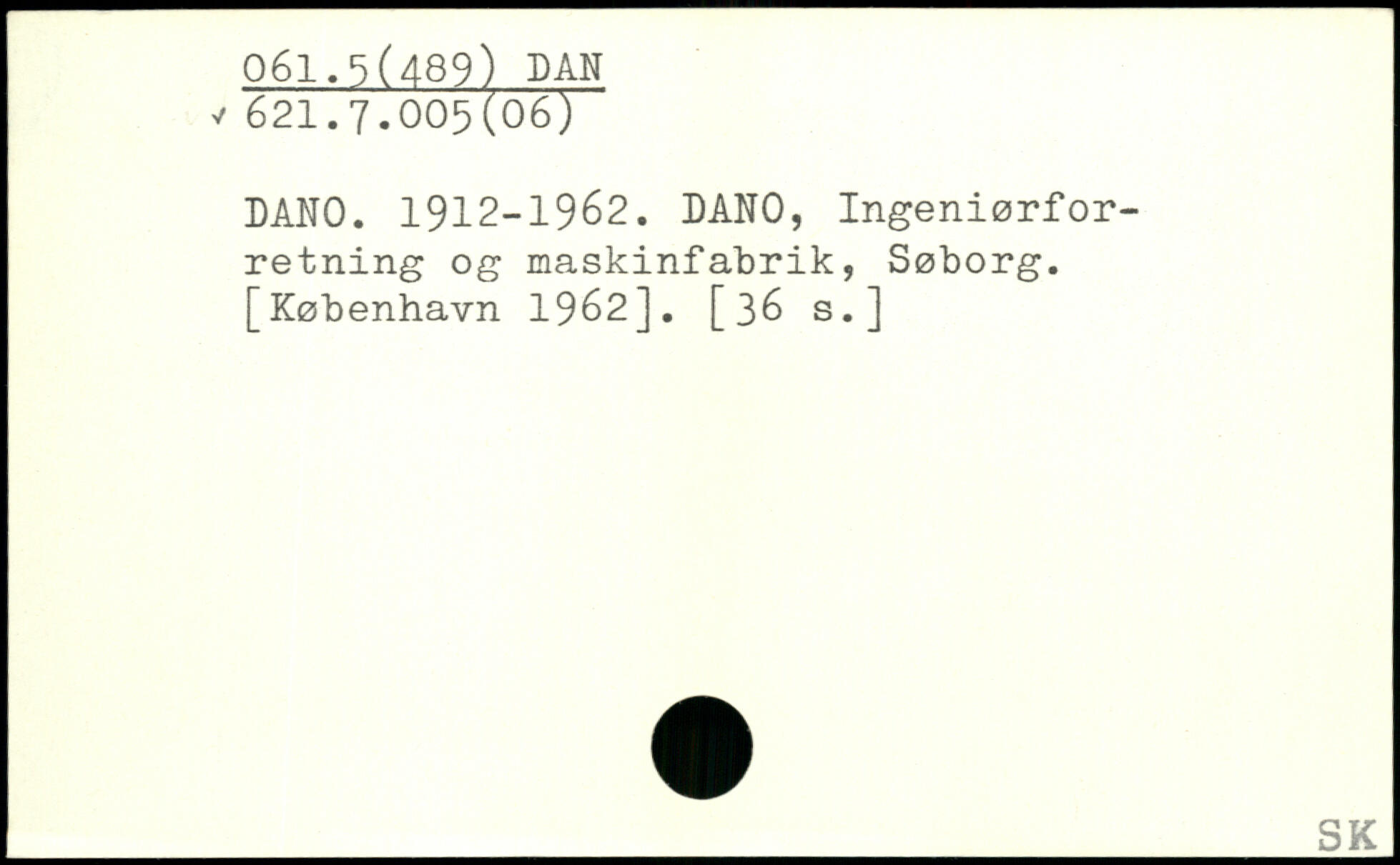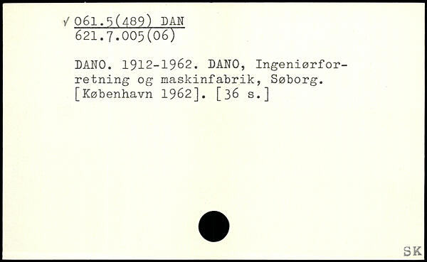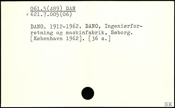 DANO. 1912-1962. DANO, Ingeniørforretning og maskinfabrik, Søborg.