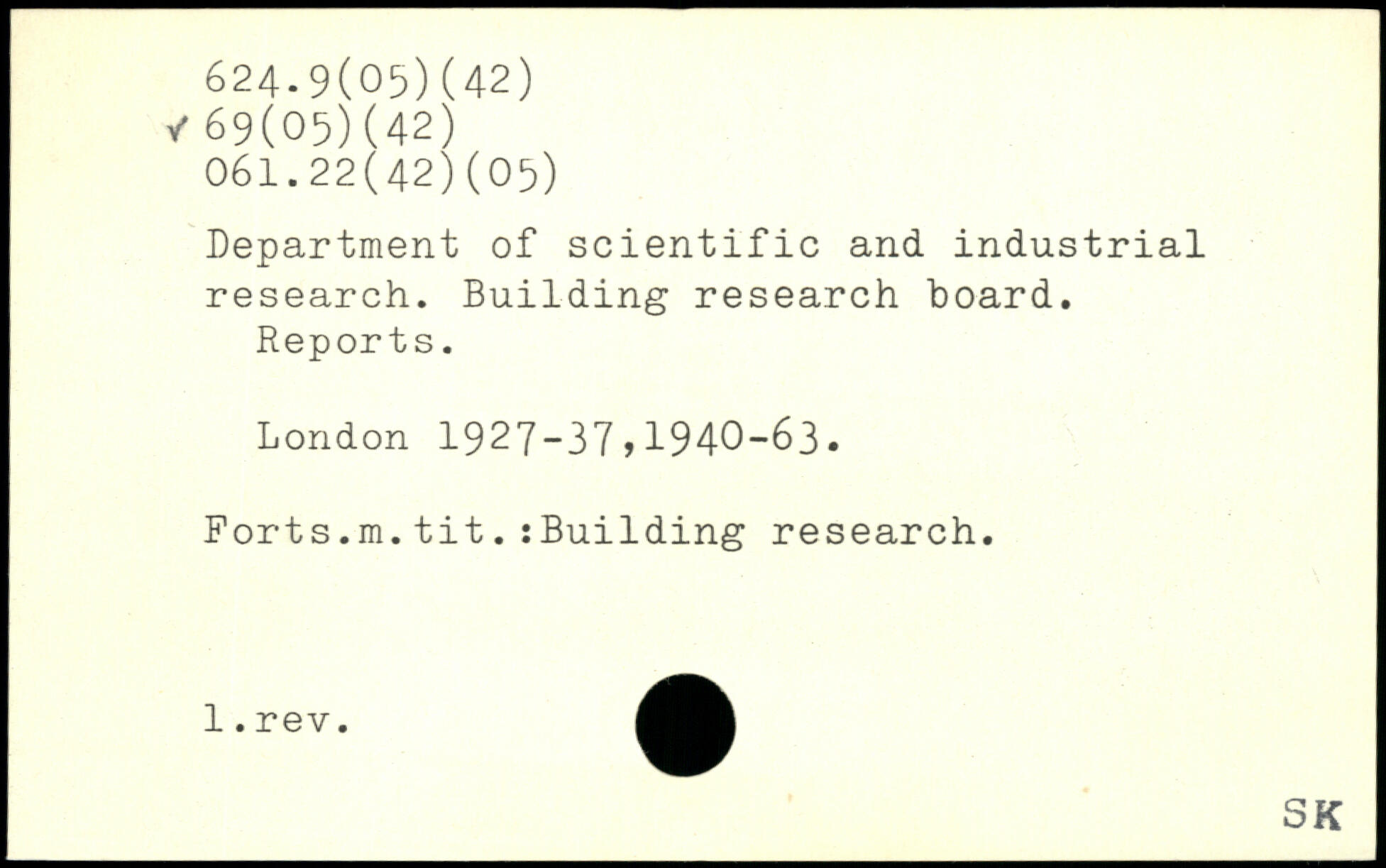 Department of scientific and industrial research. Building research board. Reports.