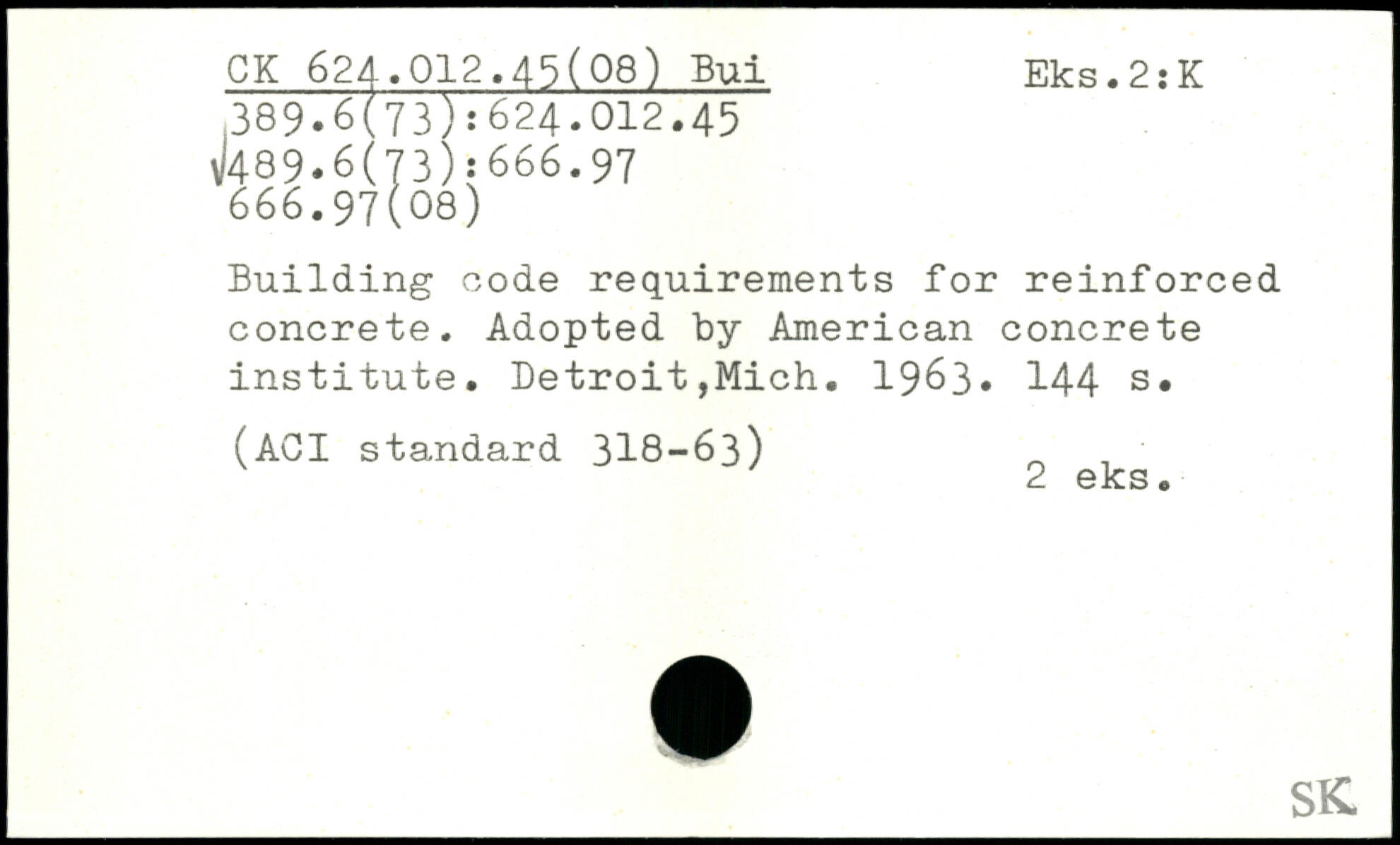 Building code requirements for reinforced concrete. Adopted by American concrete institute. Detroit,Mich. 1963