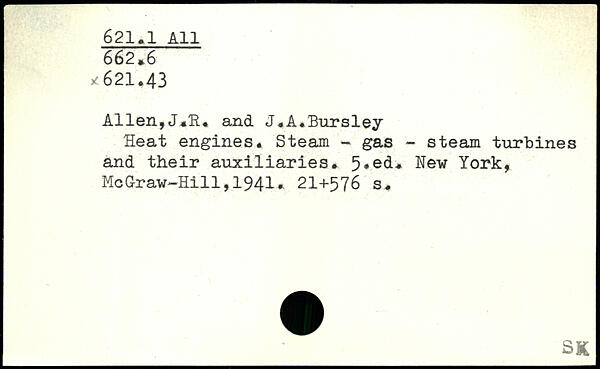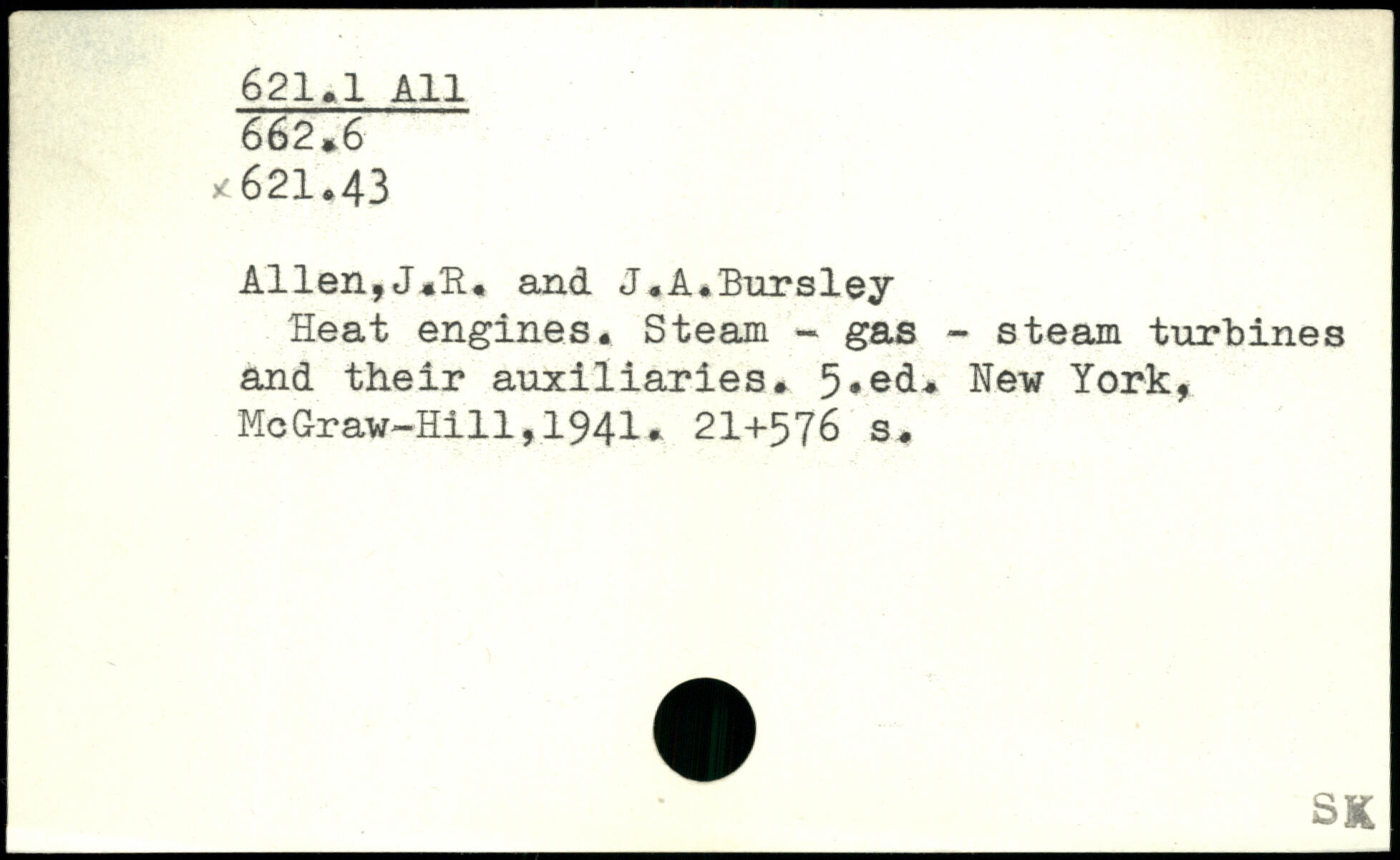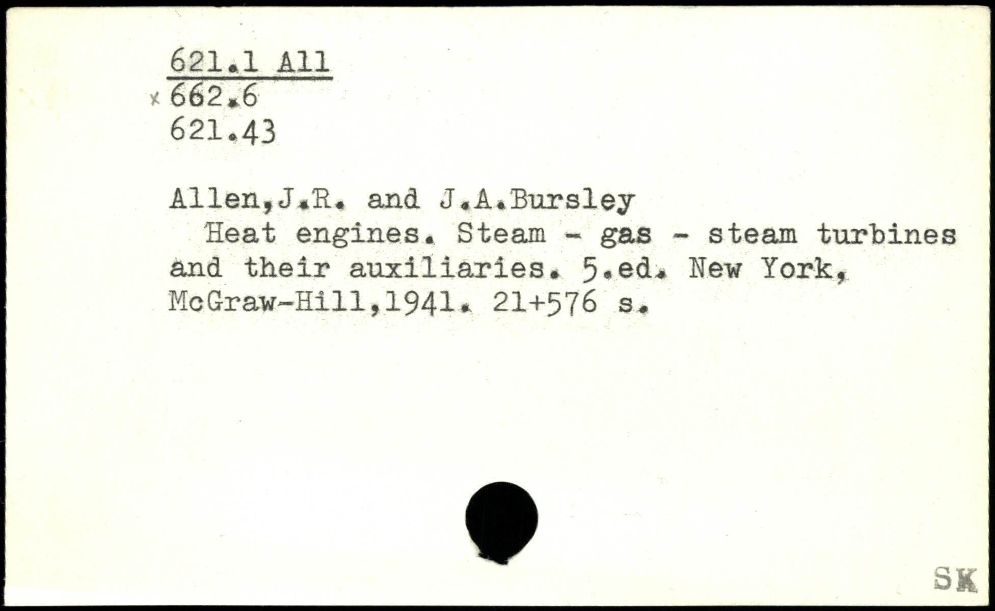 Allen,J.R, and J.A.Bursley Heat engines. Steam - gas - steam turbines and their auxiliaries.