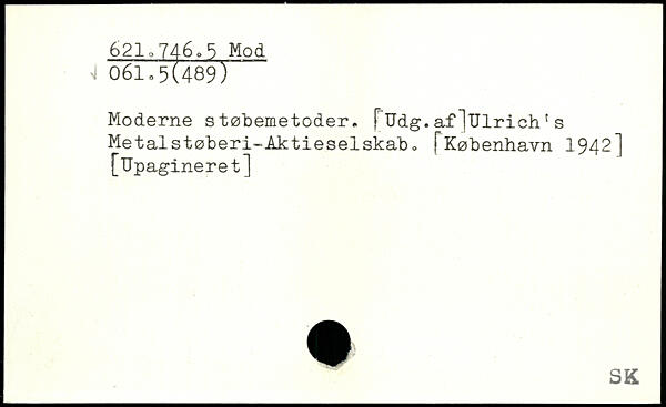 Moderne støbemetoder. [Udg. af l'Ulrich ' s Metalstøberi-Aktieselskabo